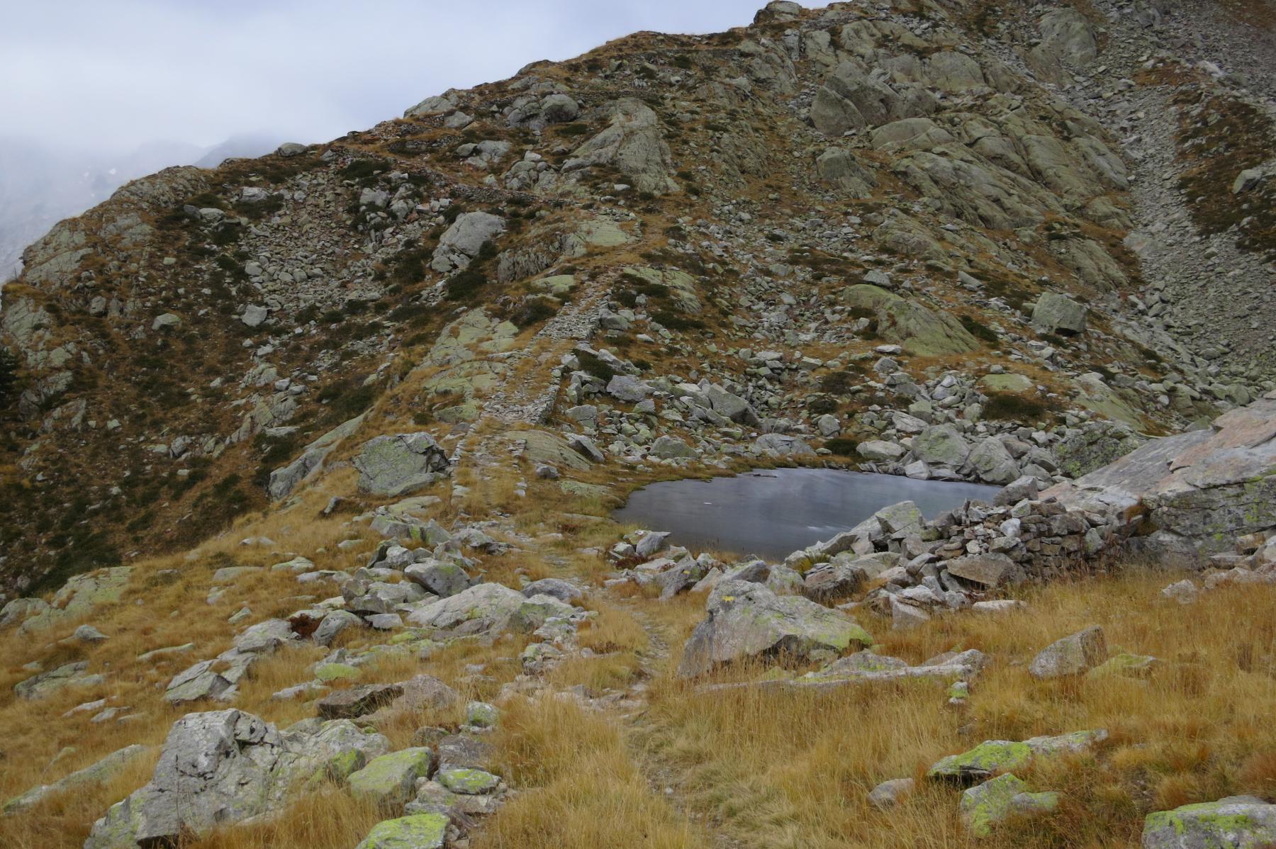I laghi non sono visibili dalla mulattiera, (deviazione di 10 minuti indicata con palina), si prosegue verso uno speroncino che separa la valletta successiva, e la mulattiera scende verso un grazioso laghetto che lo si raggiunge dopo circa 10 minuti. IL sentiero risale poi per circa 50 metri, poi si inizia la discesa verso la Valscura.