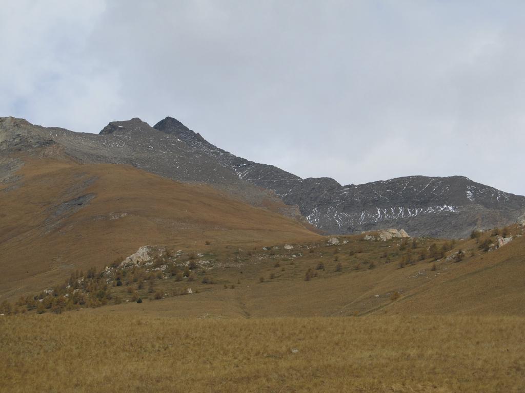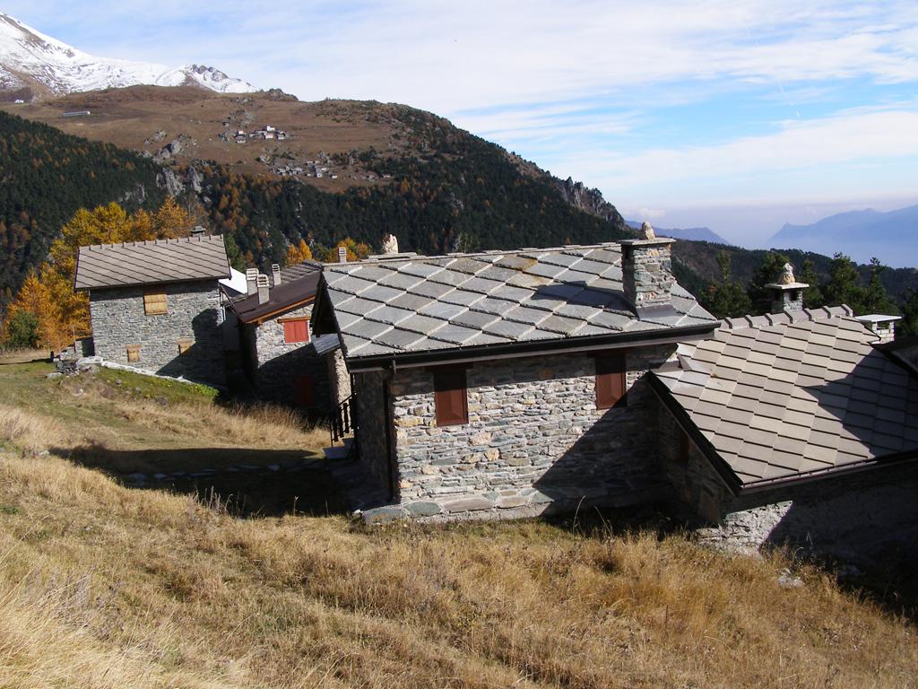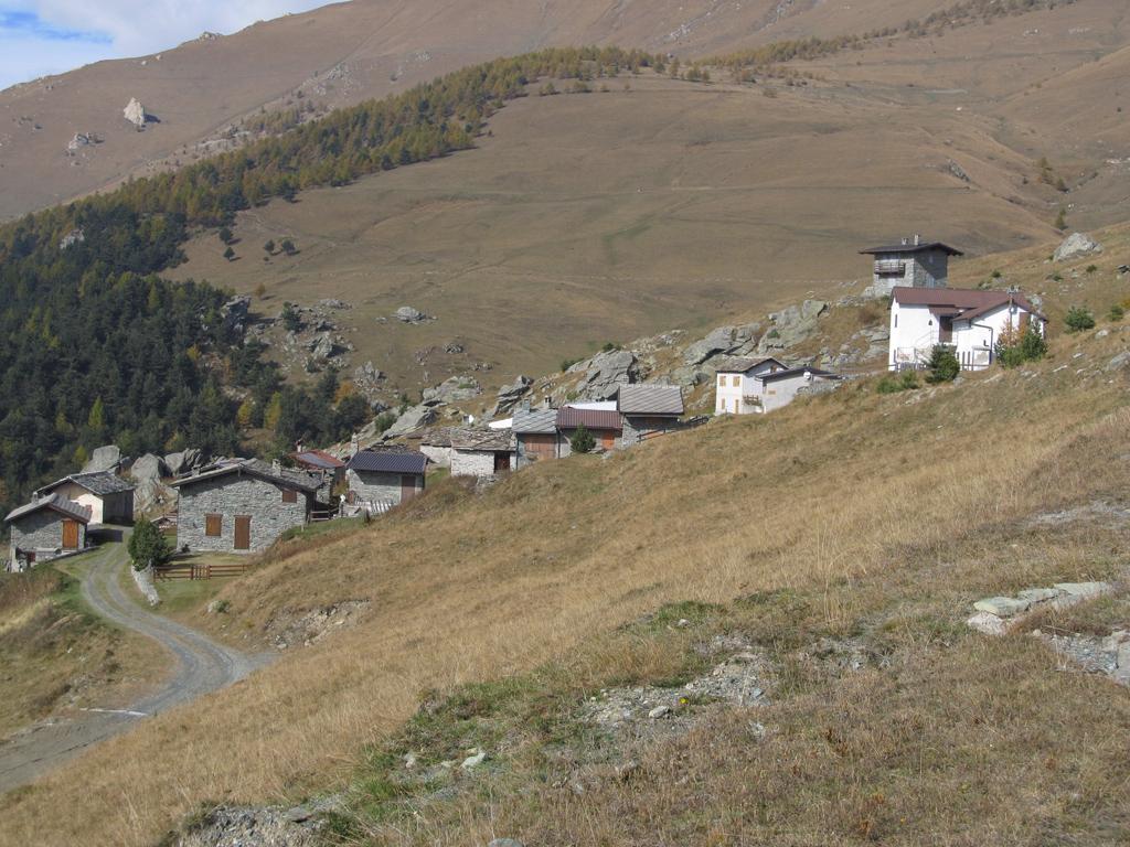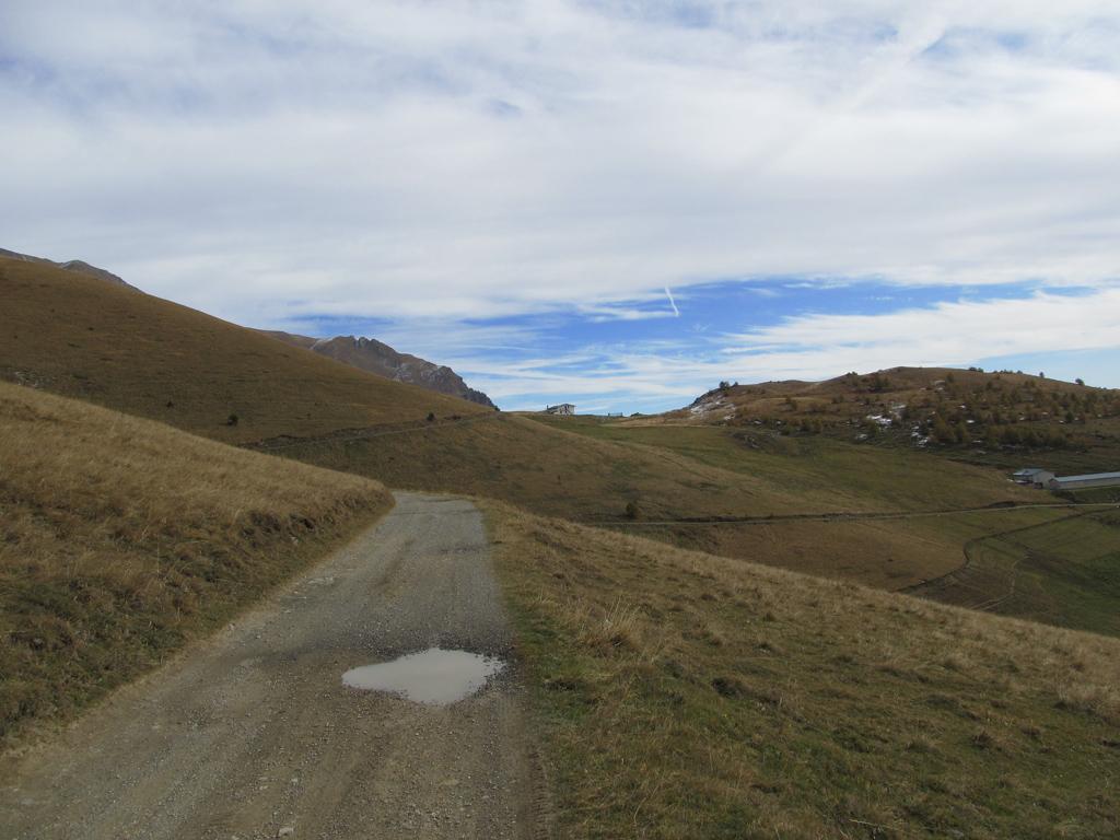 Quando sulla destra, superati alcuni alpeggi, si incontra il bivio per Tour, si abbandona la strada per La Riposa (che si vede sopra) e si prosegue a destra con dolci saliscendi, in direzione di un promontorio erboso, alle cui pendici sorge l’Alpe Costa Rossa.