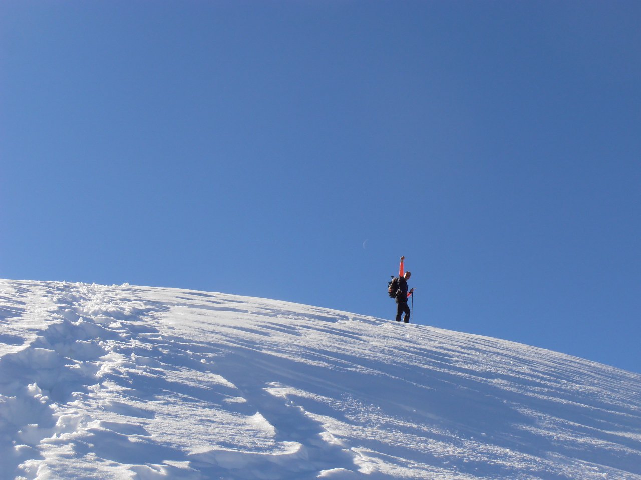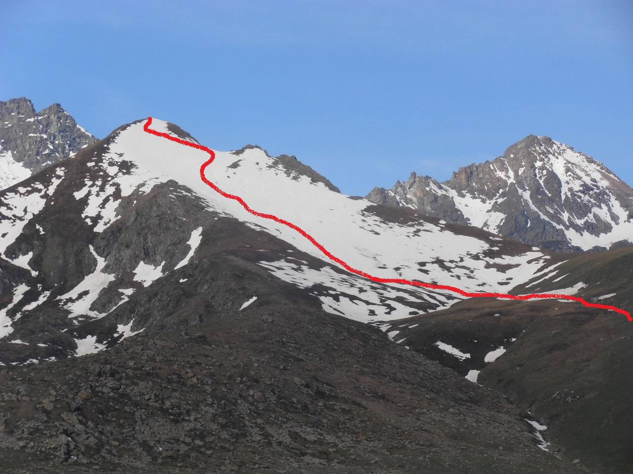 Continuare verso ovest fino a raggiungere il Colle del Vento. Da qui un sentiero taglia sotto la punta e gradualmente aggira la vetta per raggiungere la cima. Questo’ultimo tratto non è consigliabile con nebbia.