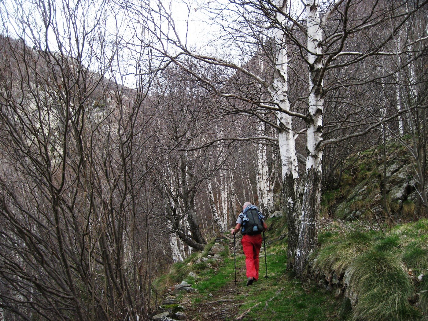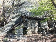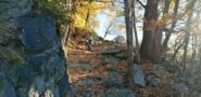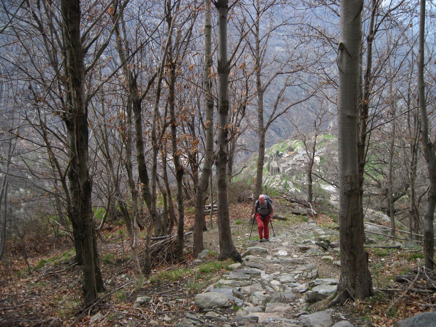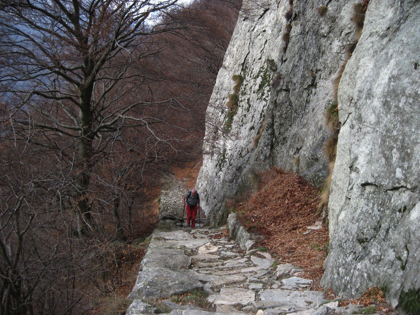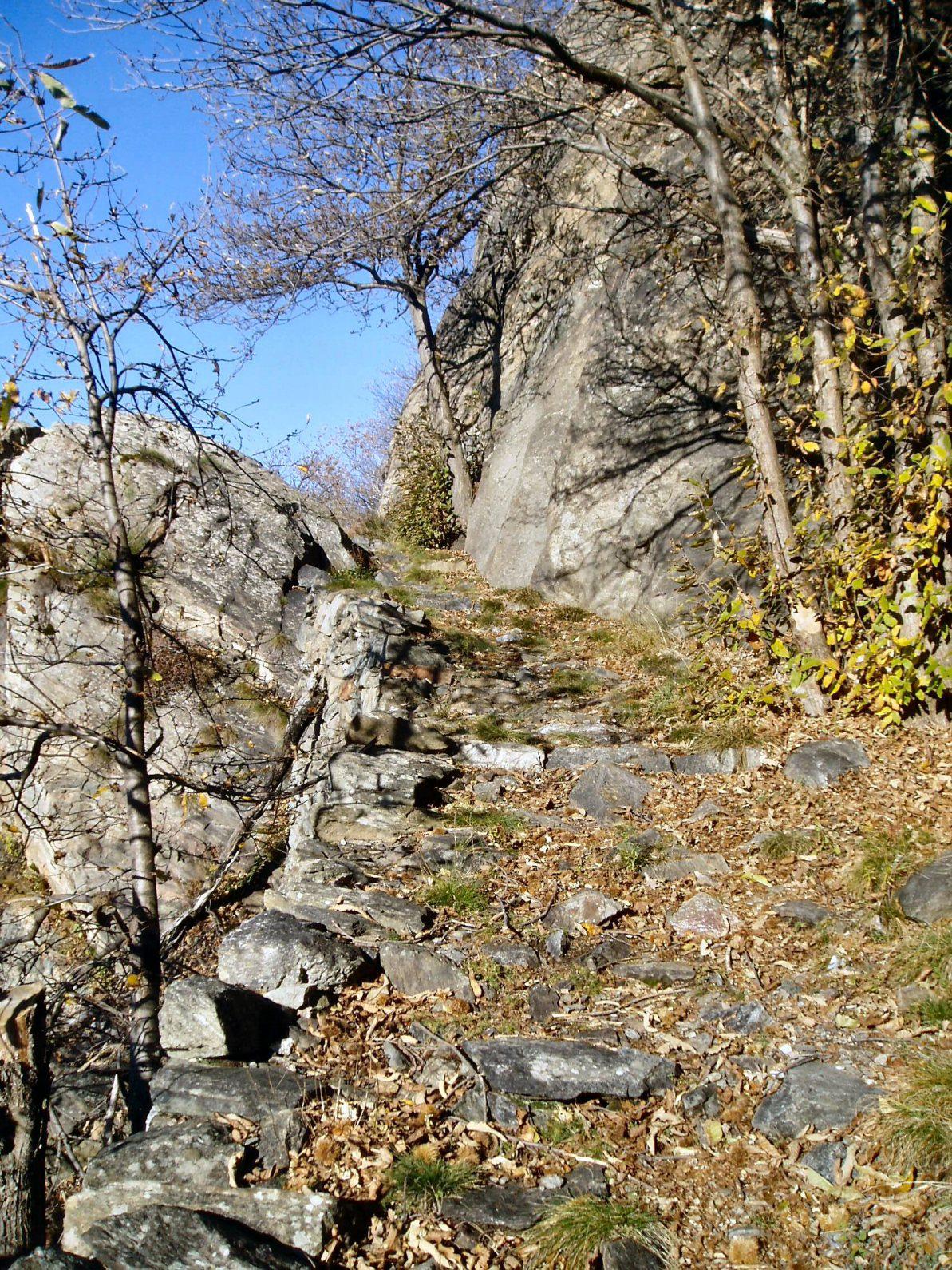 La strada diventa subito una spledida mulattiera lastricata che sale nel bosco di enormi castagni.