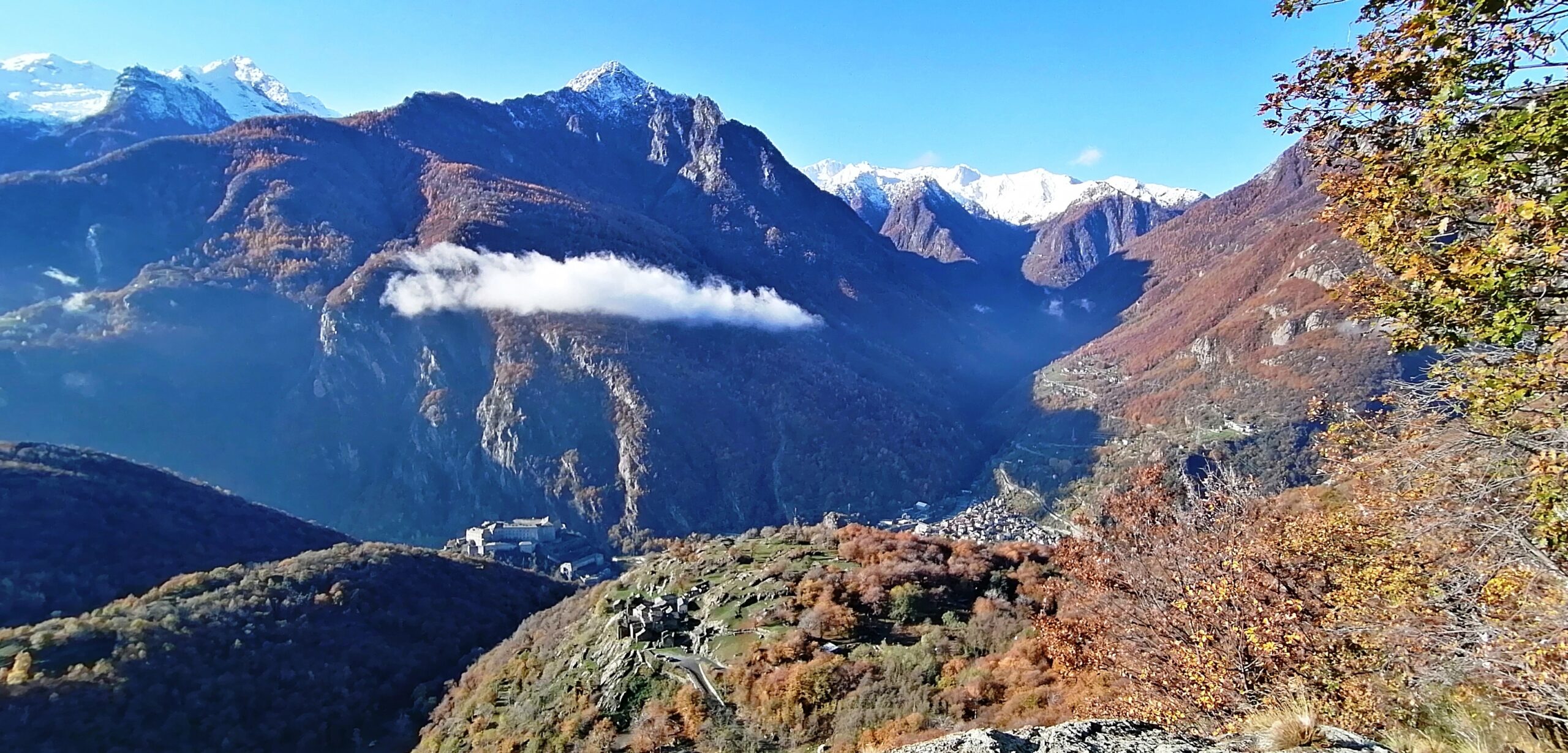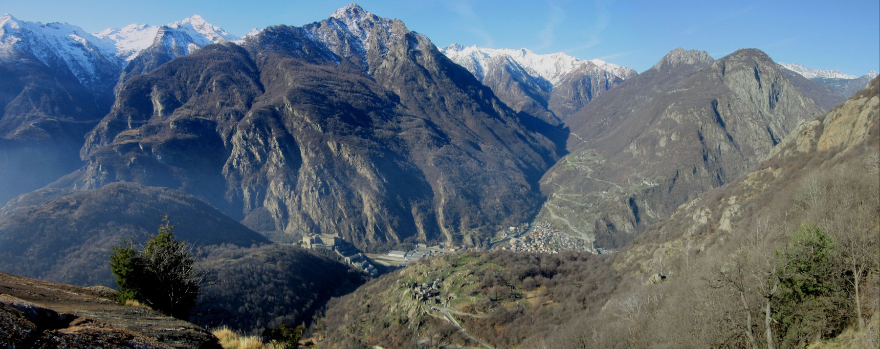 Vista eccezionale sul forte di Bard, sull'area del Monte Avic e sulle vette di Champorcher.