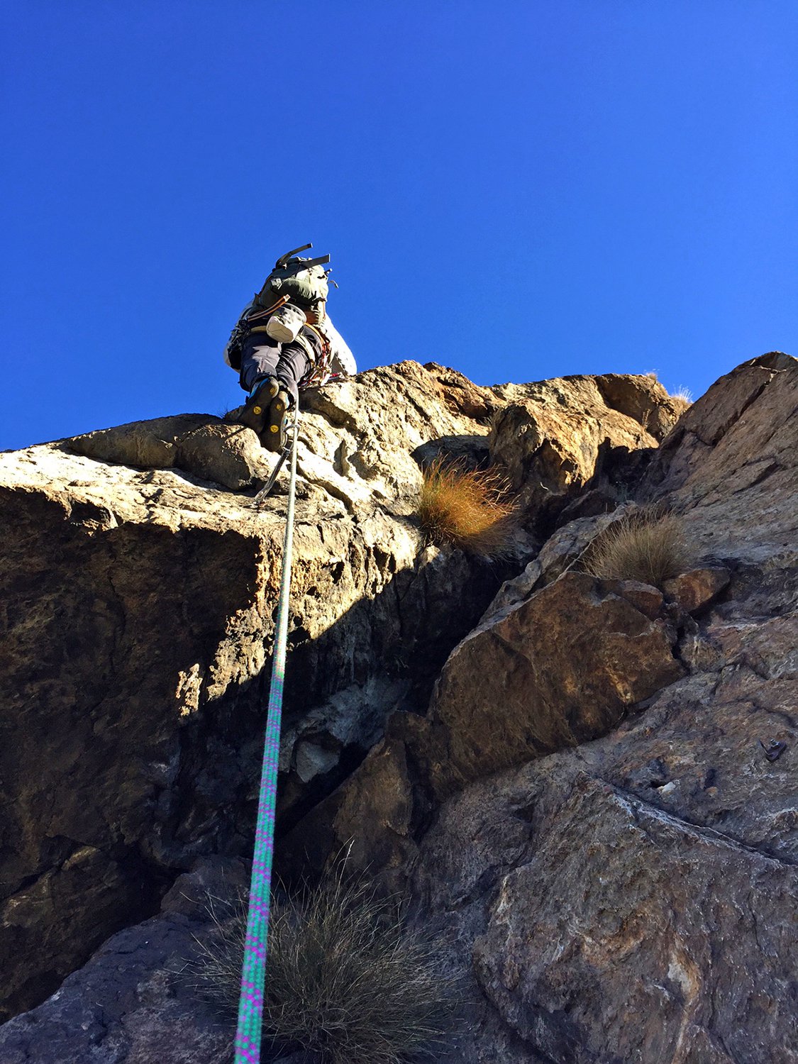 La via è in ordine per quanto riguarda la spittatura anche se alcune soste sono da collegare.Stranamente ho trovato alcune pietre che si muovono quindi prestare un minimo di attenzione a chi segue. Giornata gelida alimentata anche dal vento, ho praticamente scalato col piumino leggero addosso. Io come sempre ho “snobbato” i due tiri finali perchè li ritengo fuori via e non mi piacciono anche se li ho saliti in occasione della mia prima salita.Davide, coadiuvato da Riccardo ed essendo la prima volta che la percorreva ha insistito per salirli costringendomi a stare al freddo per un’oretta(grrrrrr!), facendomi pure preoccupare leggermente in quanto le corde della doppia che avevano fatto non venivano giù e il sole era ormai tramontato(!). Ha poi confermato che se tornerà a rifare la via salterà anche lui i due tiri finali. Sono un vecchio brontolone e i giovani non mi ascoltano piu (ah ah ah)