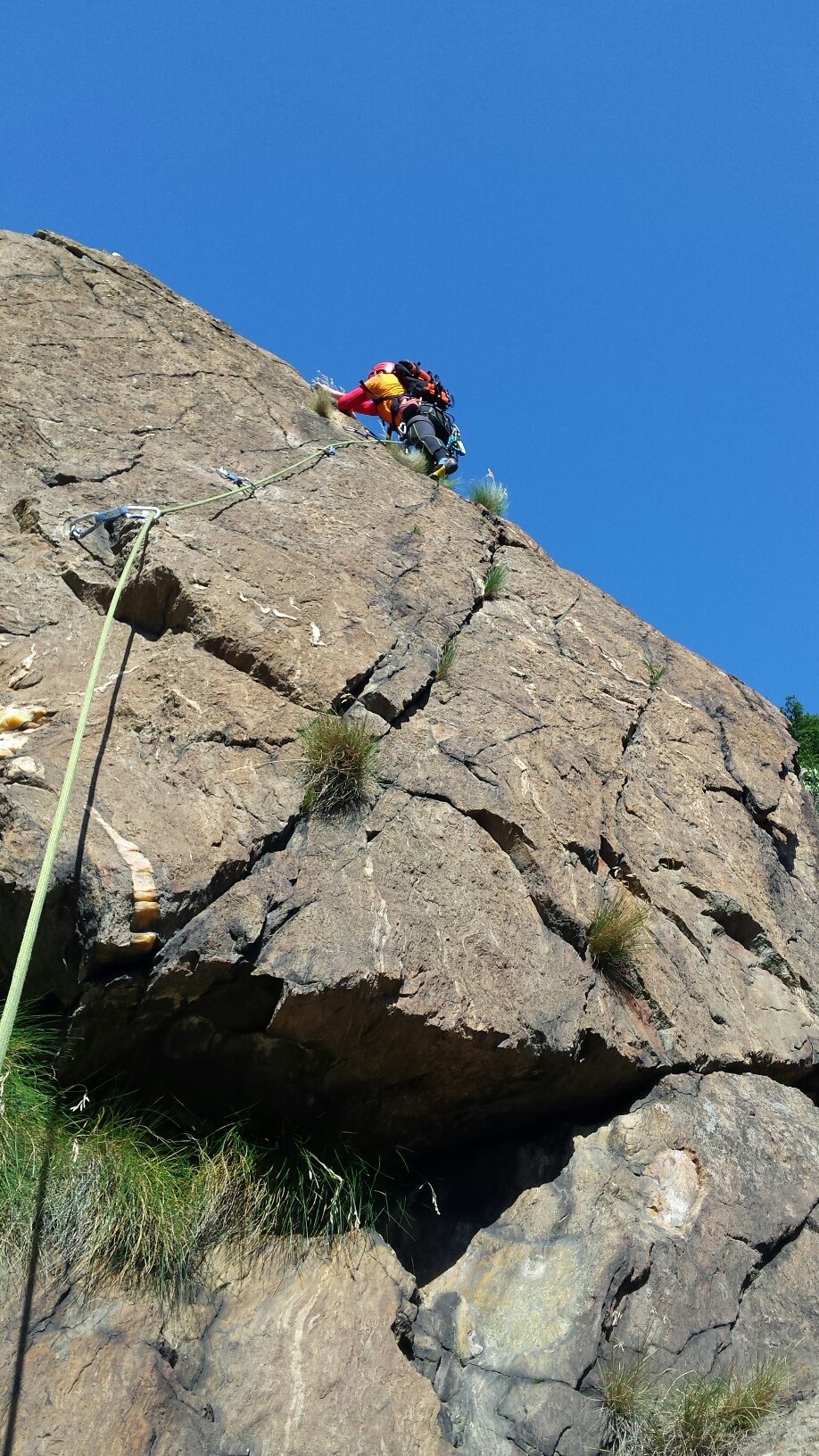 - 7 – (5c): raggiungere una cengia e attaccare sperone, sosta su betulla.