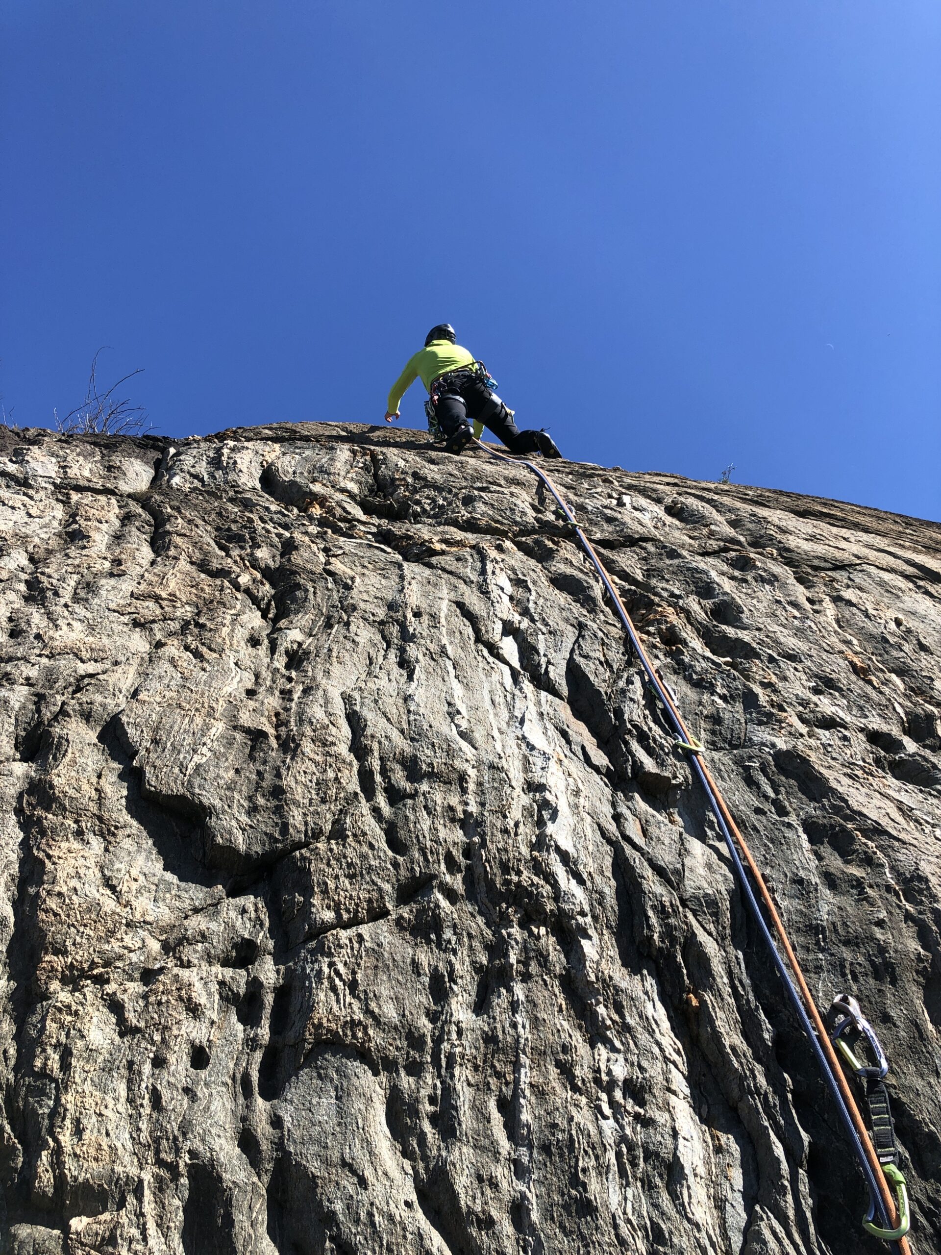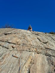 Bella via principalmente di placca. Variante molto interessante alla via classica Dottor Jimmy.