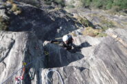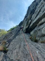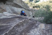 La via marcia parallela (sulla sx) alla linea di Dr. Jimmy alla quale si collega verso la fine e sulla quale si può proseguire. L'attacco e pochi metri a sx di Dr. Jimmy.