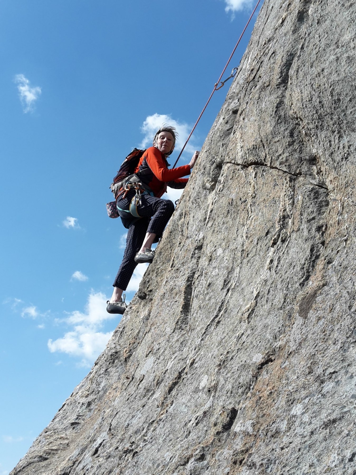 L5: placca estetica, prima facile, poi un paio di passi delicati (fessurina incastrosa), altri quattro passi facili e si è fuori.