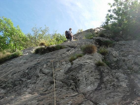 Come scritto da altri è una via divertente, ben attrezzata e di difficoltà abbordabili che si svolge su roccia da buona a ottima. Panorama gradevole sulla bassa Valle d’Aosta e la Valle di Champorcher. La discesa è decisamente divertente, interessante e varia e si sviluppa in un ambiente tanto inusuale quanto gradevole. Giornata bella e calda; noi siamo fortunatamente arrivati presto ed abbiamo compiuto la salita rinfrescati da una leggera brezza, ma in discesa il caldo si è fatto decisamente sentire. Con Fausto.