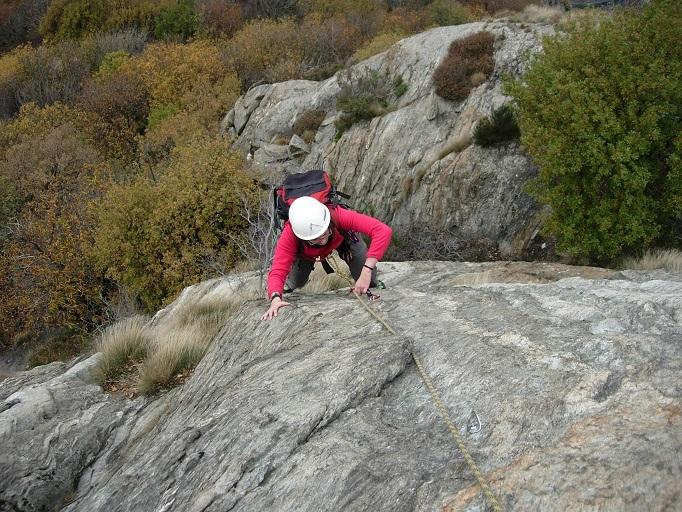 Ripetuta a circa un anno e mezzo di distanza mi è piaciuta ancora di più! Inoltre oggi ho avuto l’opportunità di tirarla tutta da primo e quindi la soddisfazione è stata ancora maggiore. Non posso che confermare quanto già scritto da me e da altri riguardo la bellezza di questo itinerario alla portata di tutti. Veramente molto bello il sesto tiro e non solo perché è il più difficile. Come scritto da qualcuno in certi punti la chiodatura non è proprio da falesia ma….avercene!! La presenza di scaglie “ballerine” nella prima parte mi è sembrata ridotta rispetto alla volta precedente. Evidentemente i numerosi passaggi stanno iniziando a fare pulizia. Peccato solo per la giornata decisamente uggiosa ed anche un po’ freddina. Roccia comunque praticamente asciutta, salvo un po’ di umidità nella parte bassa. Questa volta, oltre a Fausto, anche mia figlia Linda e la sua amica Micaela. Linda con Fausto e la “Miki” con me. Complimenti alle ragazze che si sono ben comportate malgrado la poca esperienza. Sempre suggestiva e divertente la discesa. Un saluto alle altre cordate incontrate.