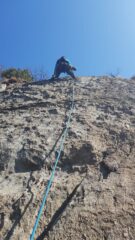 In realtà abbiamo fatto ultimi 3 tiri di table de roc (partenza sopra il pilastrino) + primi 4 tiri raggio di sole ( difficoltà 4b max) Discesa corda doppia 👍