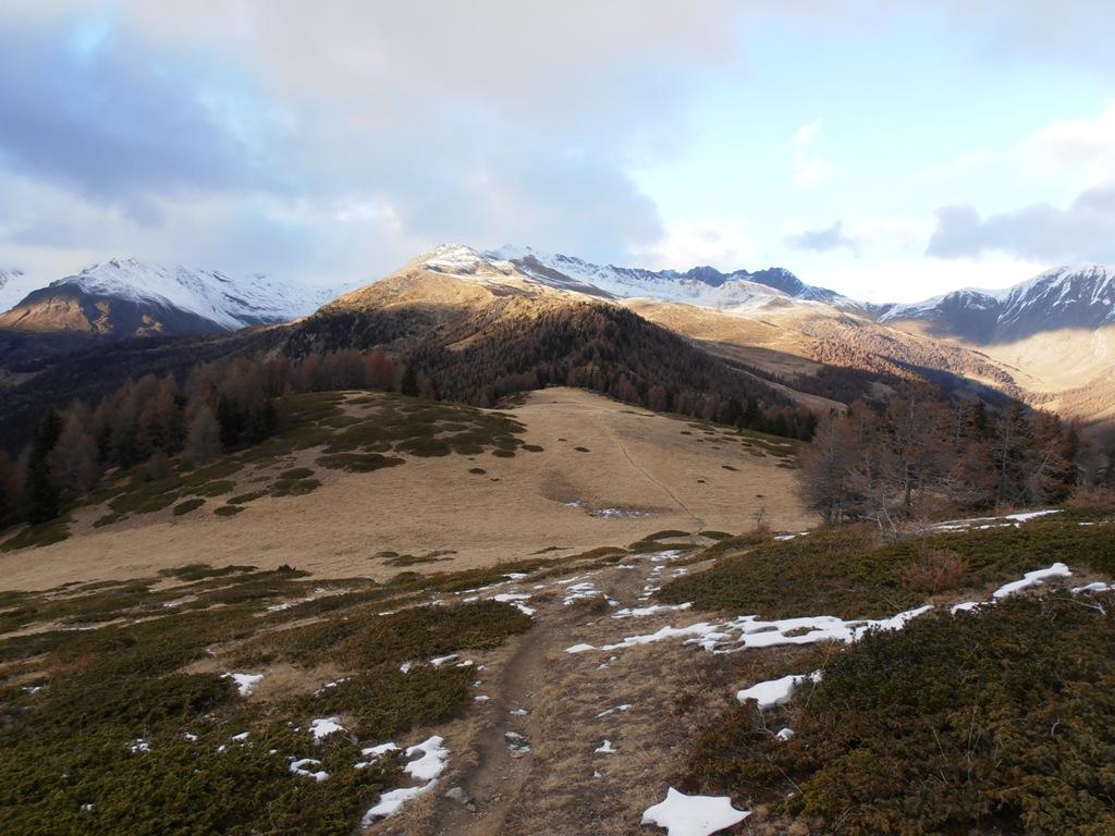 Deviare a dx e seguendo la larga cresta erbosa si arriva in breve alla sommità del Court di Bard. Discesa per l’itinerario di salita.