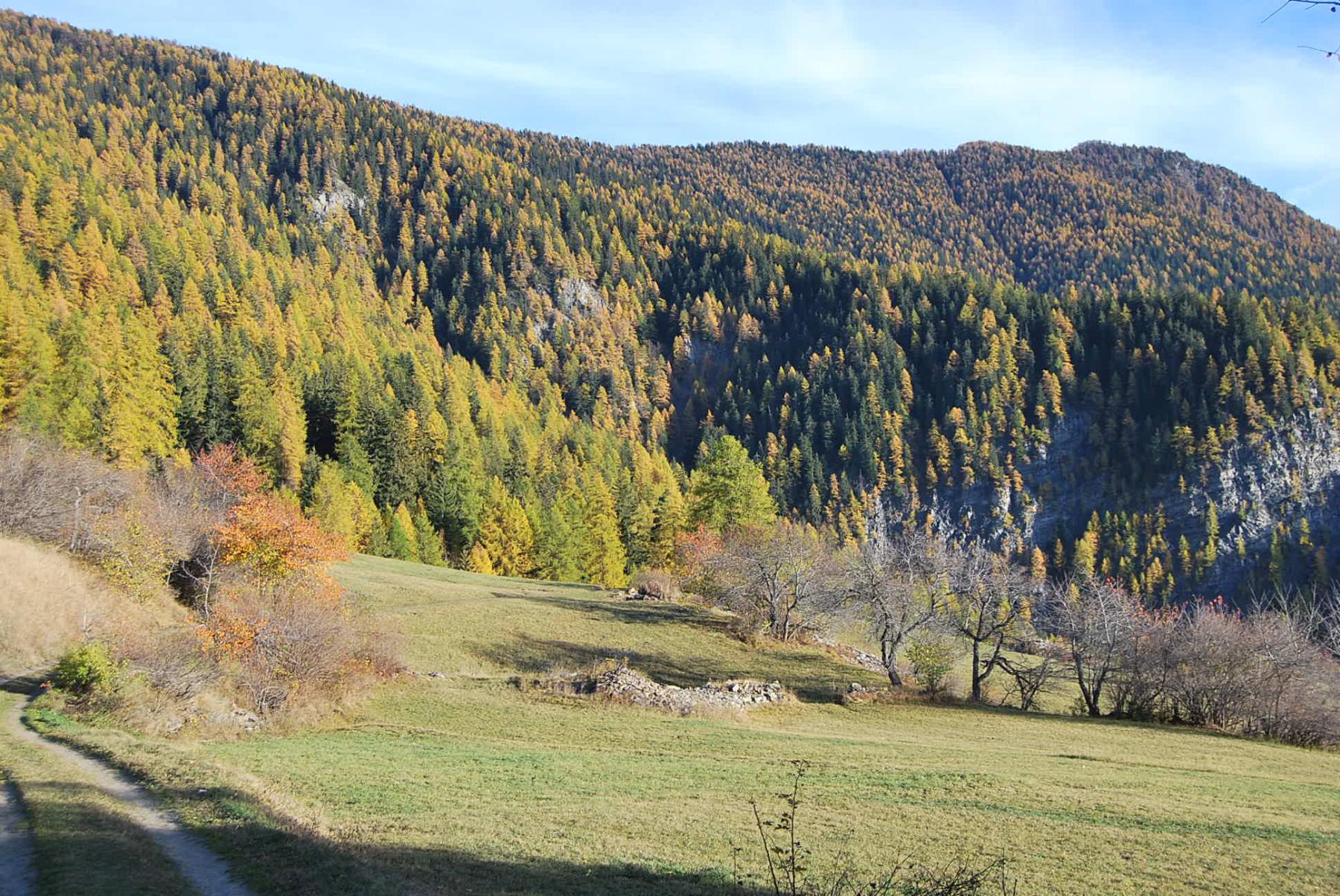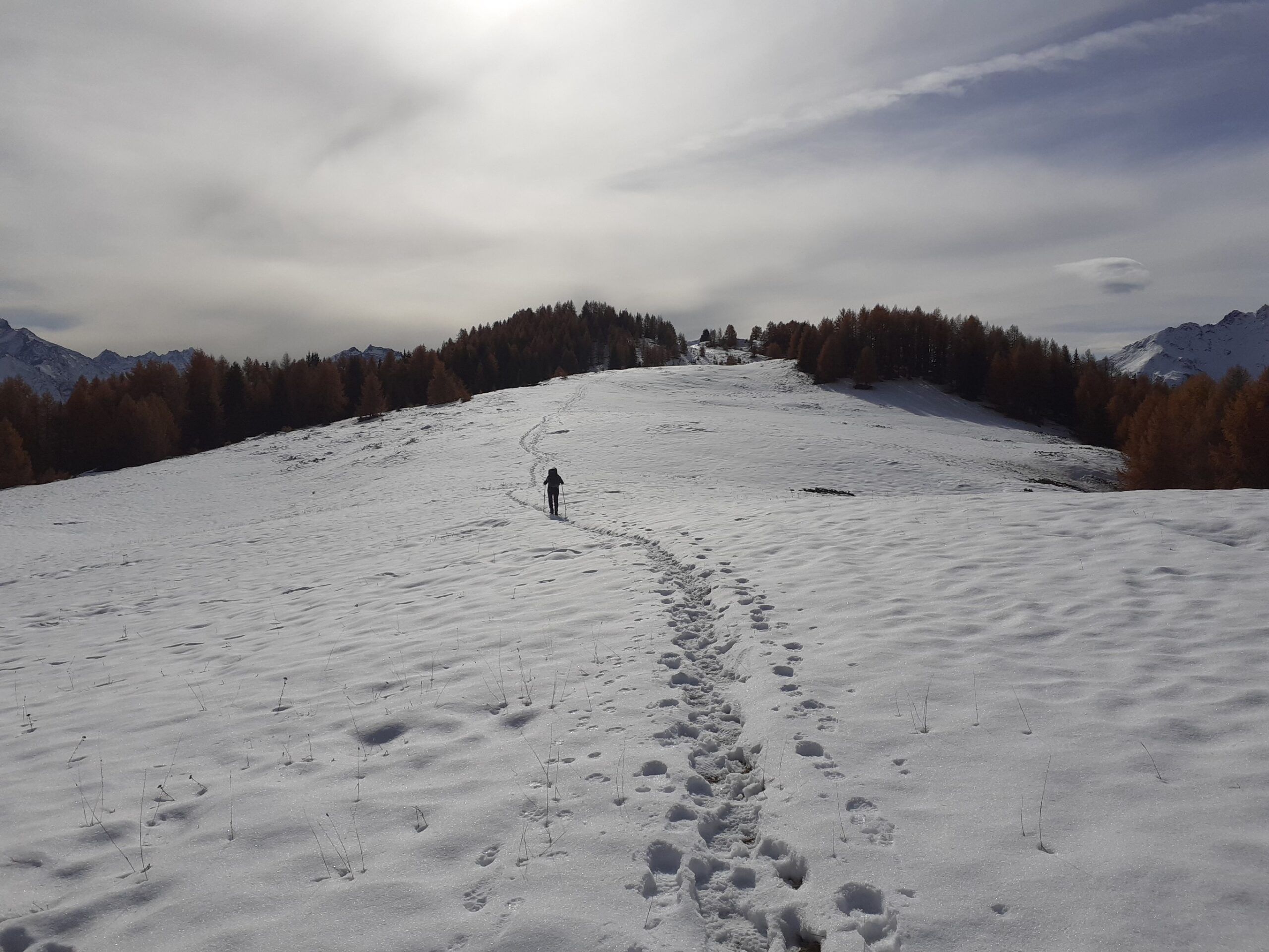 Da Challancin proseguire sulla strada (chiusa al traffico) che si alza con alcuni tornanti.