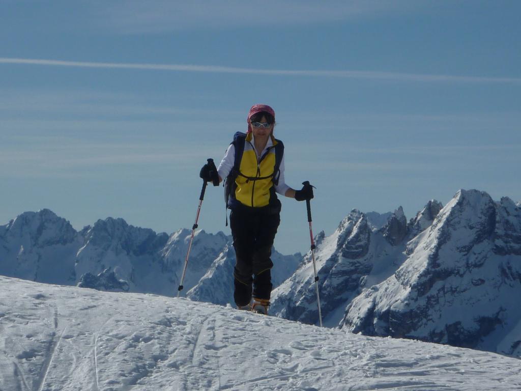 Bel giro, breve ma superpanoramico sulle dolomiti e sicuro. Neve trasformata e sciabilissima. Bello! e finalmente con la Pina!!