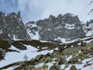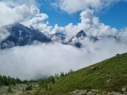 Si trascura una pista secondaria sulla destra a circa 1800 m, e dopo altri due tornanti il sentiero compie una scorciatoia che permette di abbreviare il percorso, dirigendosi verso nord passando nei pressi dell’alpeggio Primo 1857 m, dopo aver attraversato una colata di massi di una antica frana.