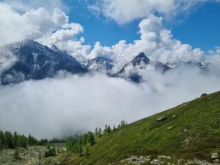 Si è ormai fuori dalla fascia boscosa, e si possono ammirare le alte vette della Valpelline, in modo particolare la piramide della Becca di Luseney, con degli scorci anche sulla Grivola e sui ghiacciai della Testa del Rutor in Valgrisenche.
