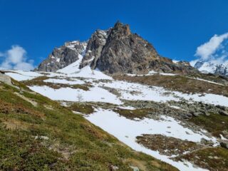 Salito per la ripida scorciatoia ormai pulita. La neve si trova subito dopo il rifugio. Sono sceso col sentiero verso Berrier trovando alcuni traversi ancora innevati ma ben percorribili.