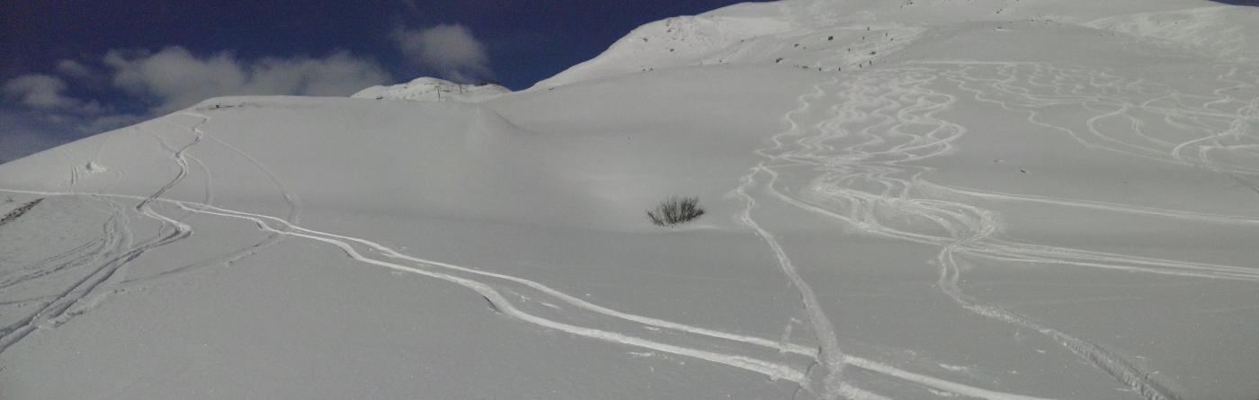 Bella discesa cercando il fuori pista con belle curve fino all’Arp du Jeux poi in pista fino alle vetture.