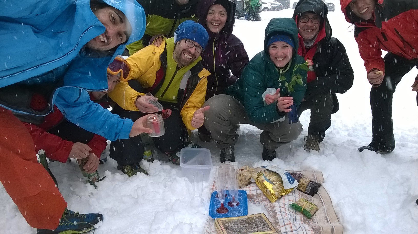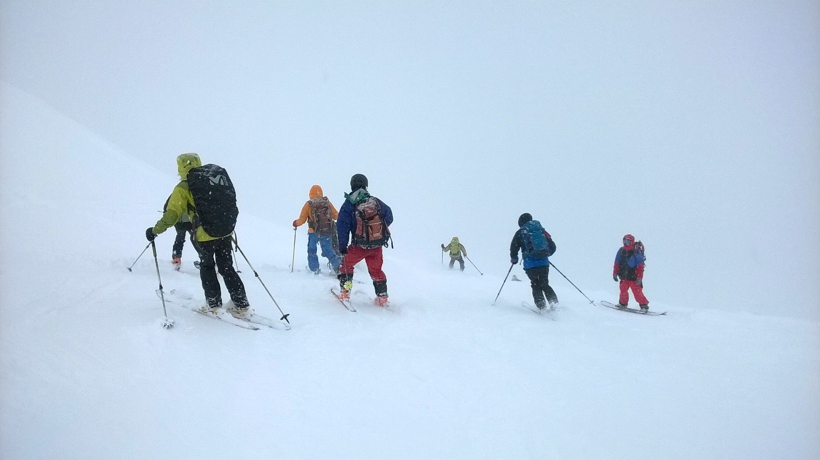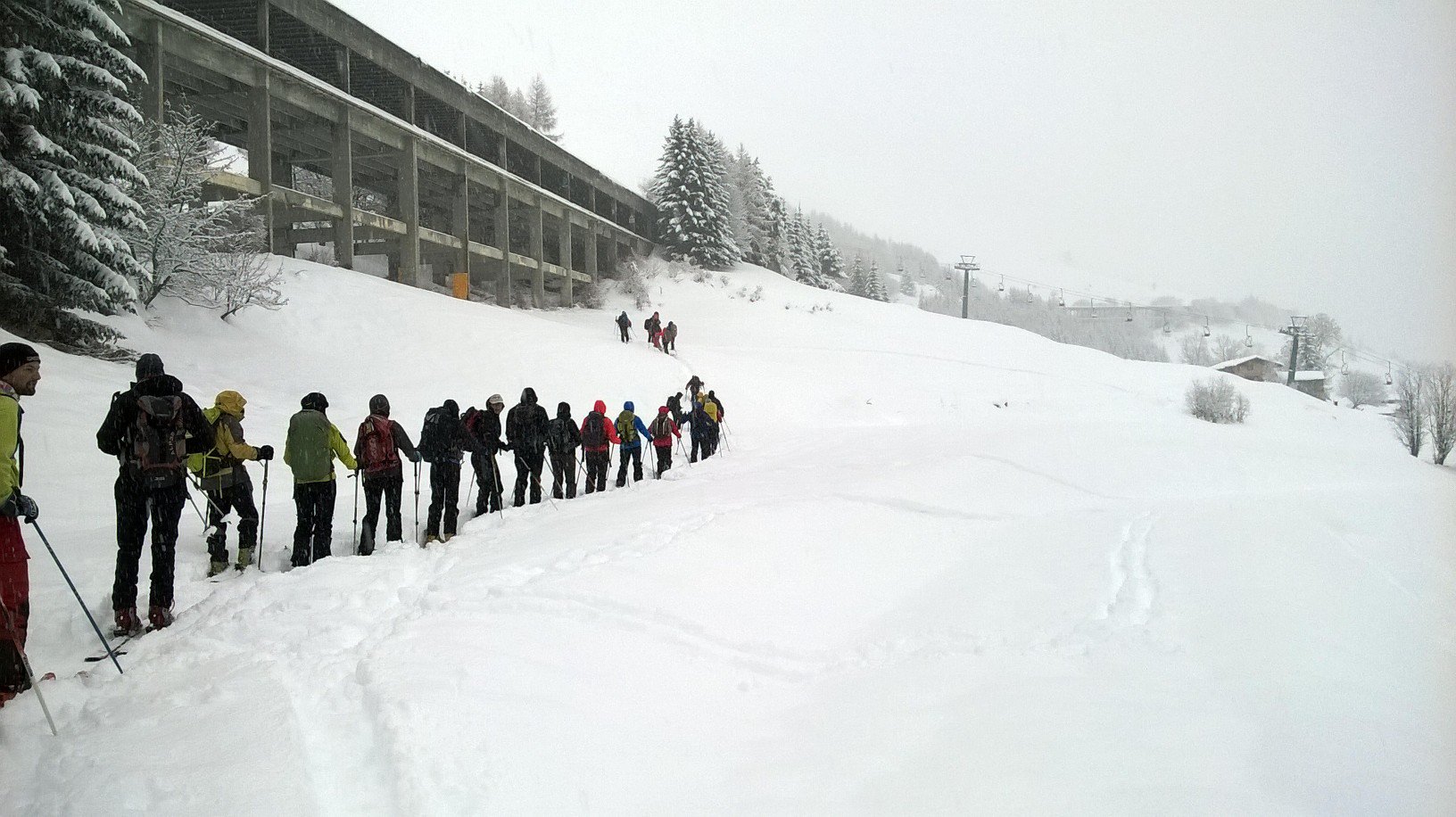 Prima uscita stagionale del gruppo G.A.S.A.T.I. del CAI Chivasso con 32 partecipanti partiti sotto una fitta nevicata (finalmente!) dal piazzale degli impianti di Crevacol. Un lungo serpentone che, con l’aggiunta dei circa 25 elementi del CAI Asti incontrati lungo il percorso era davvero impressionante. Visibilità discreta in salita ma divenuta nulla all’arrivo della seggiovia Arp du Jeux, poco oltre quota 2.400. D’obbligo il dietrofront visto anche l’infittirsi delle nevicata in corso. Buona la discesa anche se nei tratti meno ripidi si faticava a scendere per l’eccessiva abbondanza di neve…ma di questi tempi è un lusso! Nel piazzale, nonostante il freddo e sotto le intemperie, i G.A.S.A.T.I. più giovani hanno offerto a quelli un po’ meno giovani un ricco aperitivo per festeggiare l’inizio di questo 2016 ricco di appuntamenti sci alpinistici e culinari.