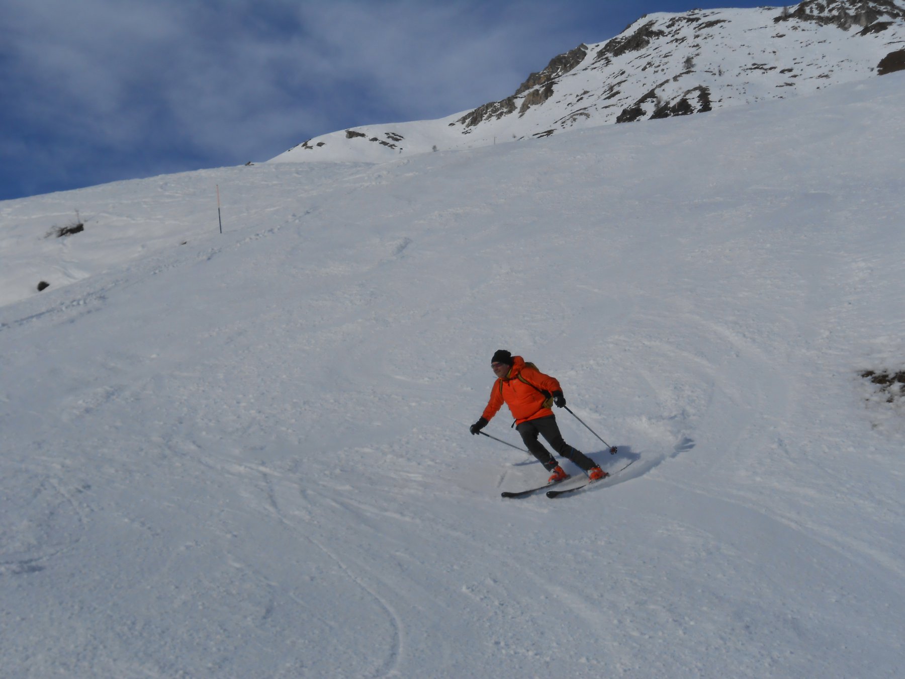 Si ritorna in Val d’Aosta, con qualche grado in meno rispetto sabato scorso, saliti costeggiando qualche pezzo di pista e seguendo alcune tracce fuori, inutile dire che è una gita si fa in sicurezza, scesi su una traccia ben battuta anche su crosta portante ricongiungendosi alla pista di discesa.