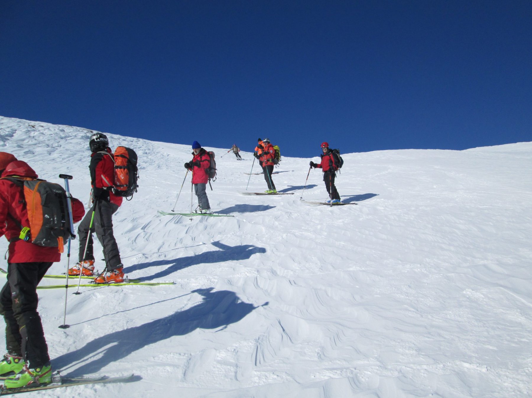 oggi in 14 evergreen, due dei quali hanno preferito salire a col Serena. Noi invece siamo saliti fuori pista e siamo scesi in pista onde evitare problemi nella parte bassa. Bella giornata di sole ma molto fredda