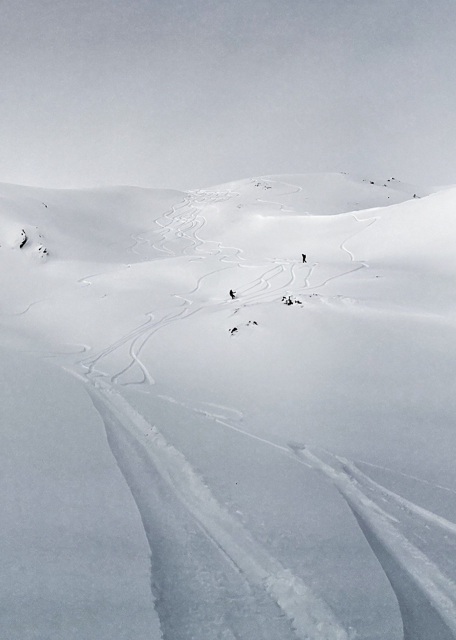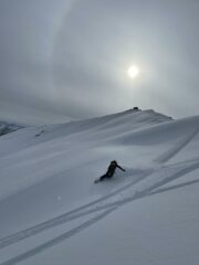 A distanza di un giorno un’altra gita alla Tete de Crevacol ma questa volta gruppo diverso e versante di discesa diverso. Giornata non serena ma visibilità buona. Scesi dal versante nord verso vallone del Menouve, con sole due tracce di amici del giorno precedente e tanta powder. Lungo rientro a spinta sul tetto del tunnel ma ne è valsa la pena.