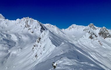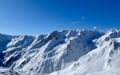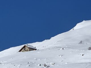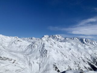 Innevamento buono in tutto il comprensorio. Comba di merdeux, Zona Corleans, costa serena e malatrà, molto carichi, tanto che quasi non si vedono le rocce. Vista solo una traccia sino a metà della costa serena e per me è già troppo. Arrivato sino al bivacco Deffeys. Prima parte su neve farinosa compatta sciata con attenzione sino a raccordarmi alla pista tirata a puntino, ma chiusa. Perfetto. ultime curve su farina sciolta portata dal vento.