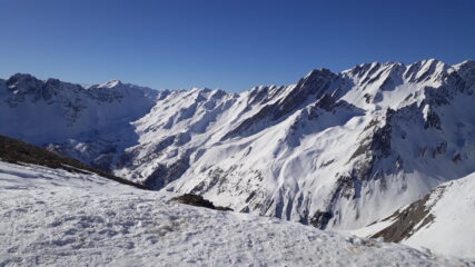 salito dalla pista merdeaux con alcune zone scoperte.la prima parte di discesa si trovano sastrugi e qualche pezzo liscio di neve trasformata,mentre in basso ho preso la pista toussac, chiusa ma perfettamente battuta.Sulle piste bella neve primaverile.