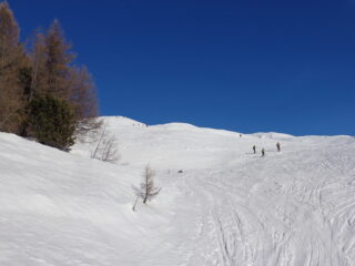 Scesi su neve di tutti i tipi, da morbida a dura , farina ben poca!!!! Comunque ne è uscita una bella sciata. Non si sono toccate pietre.