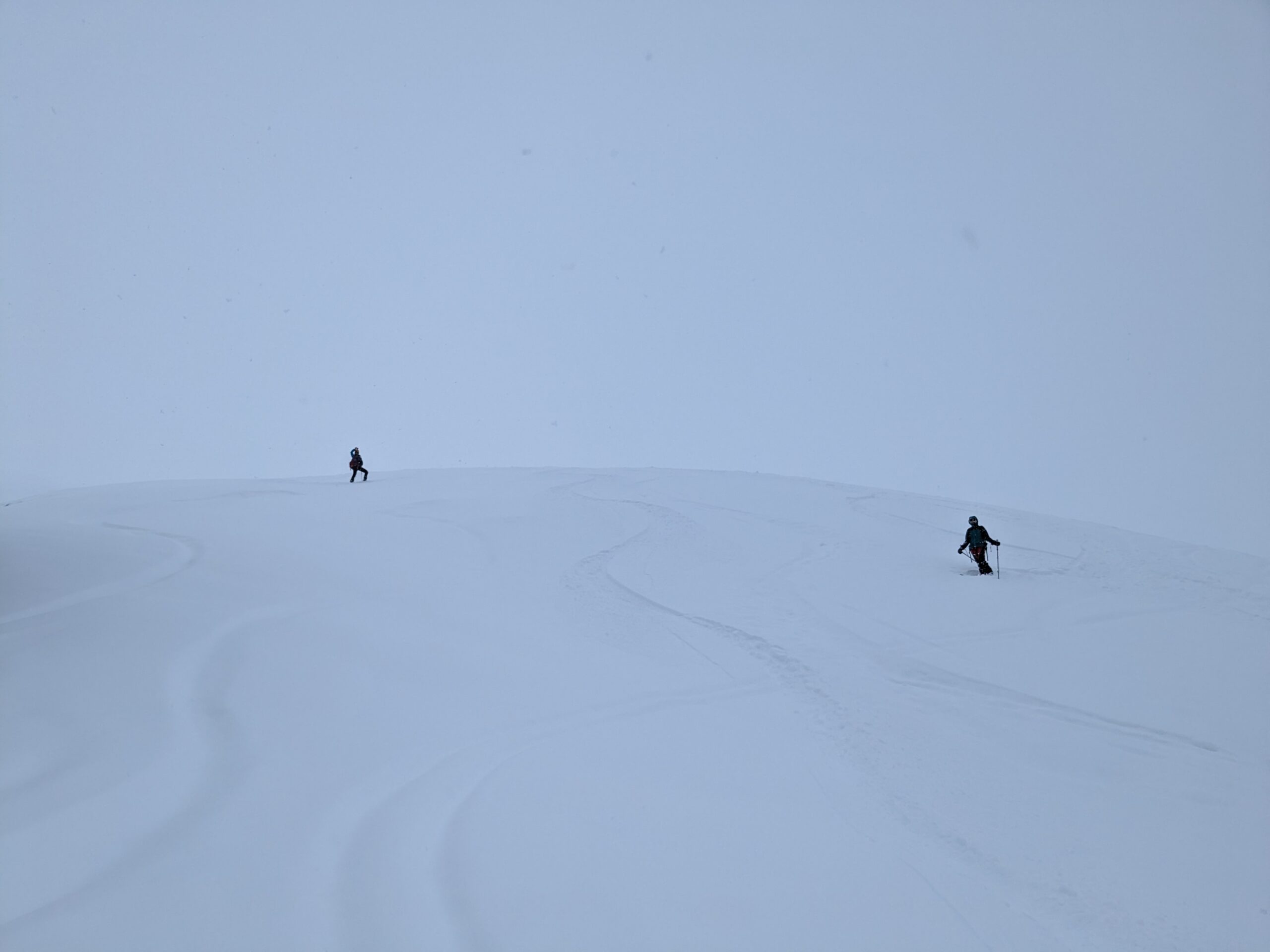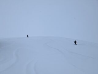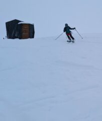 Whiteout poco sotto la cima, ci siamo allora diretti all’arrivo degli impianti