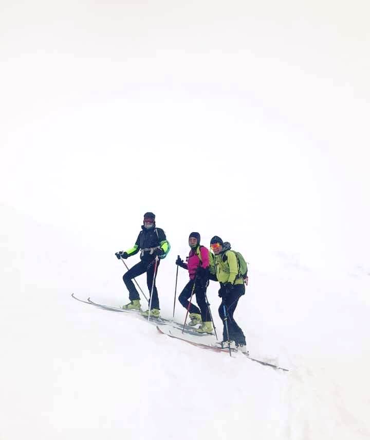 saliti con vento forte in aumento, sensazione ovattata White out,il freddo mi aveva quasi paralizzato il viso, poi una finestrella ci ha consentito di fare una discesa discreta. con J Pierre Ilaria e Danilo.