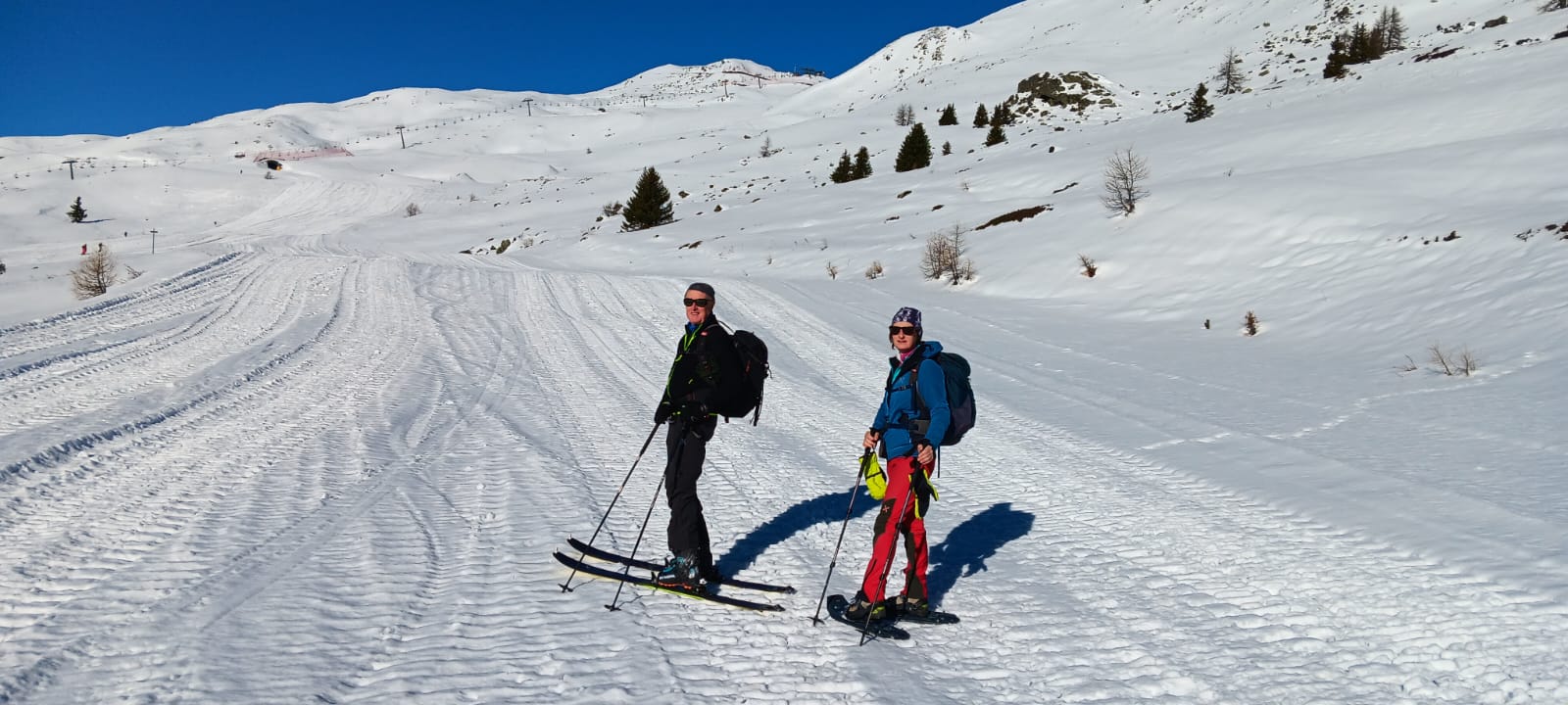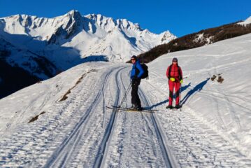 Ci siamo fermati poco sotto il bivacco. Salita su piste “cingolate”…….discesa su piste “cingolate”, con neve dura e ghiacciata che non ha mollato…. non ha sentito lo zero termico a 3000m .