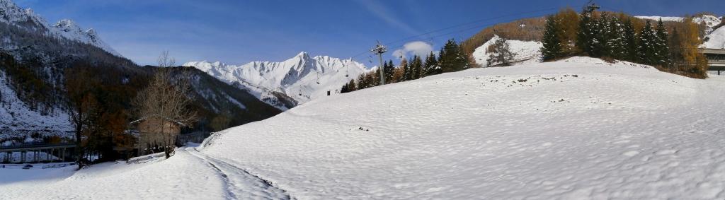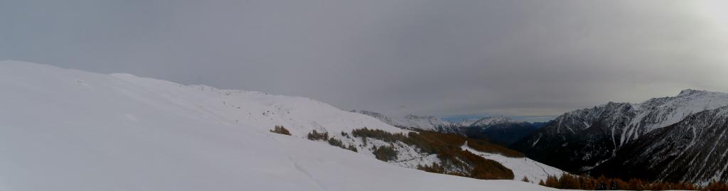 Oggi sorpresa …partito dal parcheggio di Crevacol con 10cm. di neve fresca venuta nella notte ,traccia da fare completamente ,ho raggiunto prima l’Arp du Jeux trovando un manto nevoso salito a 30 cm. ho proseguito verso il Mont Borsalet sempre tracciando in oltre 50 cm. di neve ,indispensabili le ghette che fortunatamente avevo preso.