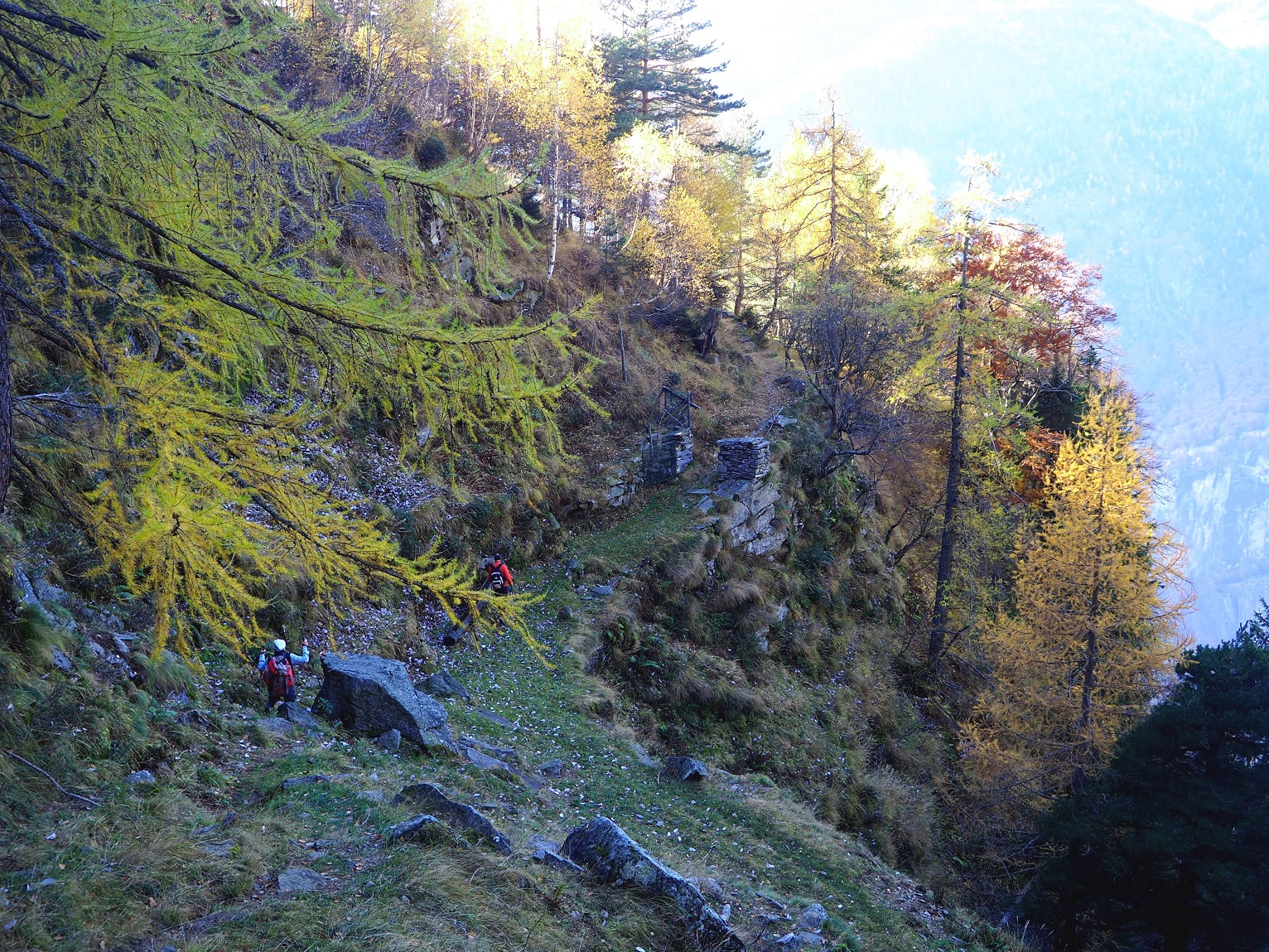 Da Scezza dapprima si segue la strada asfaltata, poi si prendono le numerose scorciatoie nel bosco di betulle e castagni che attraversano più volte la strada; la si abbandona ad un cartello con l’indicazione “Gorta” (attenzione che a 1000 metri un cartello indica l’alpeggio circostante come Gorta, ma è errata l’indicazione della località).