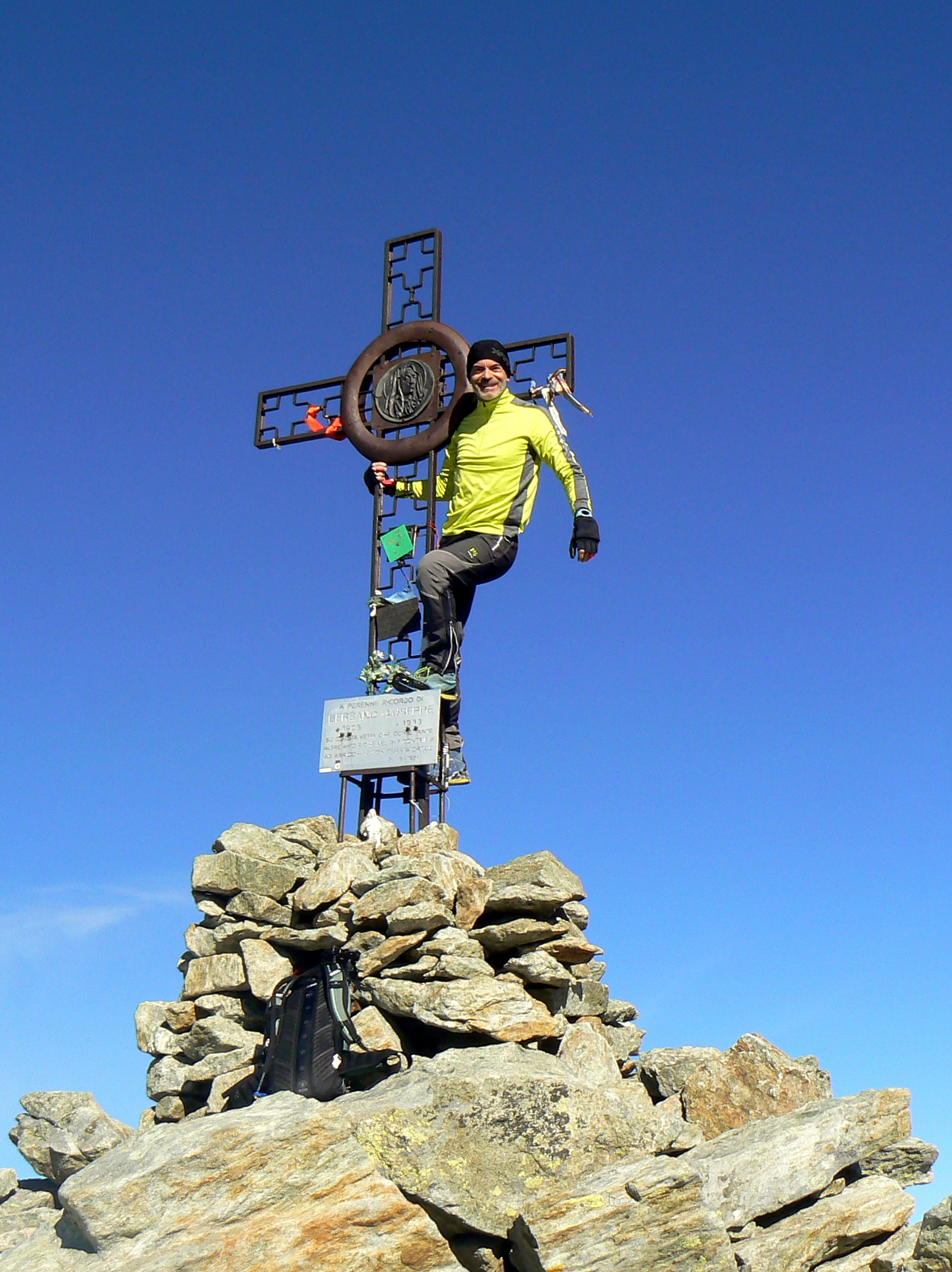 Ho seguito il più possibile il filo di cresta con passaggi divertenti su ottima roccia un po’ spruzzata di neve nelle zone in ombra, aggirando però i primi due torrioni non avendo portato attrezzatura con me, ma soltanto una spalla ed un ginocchio malconci…