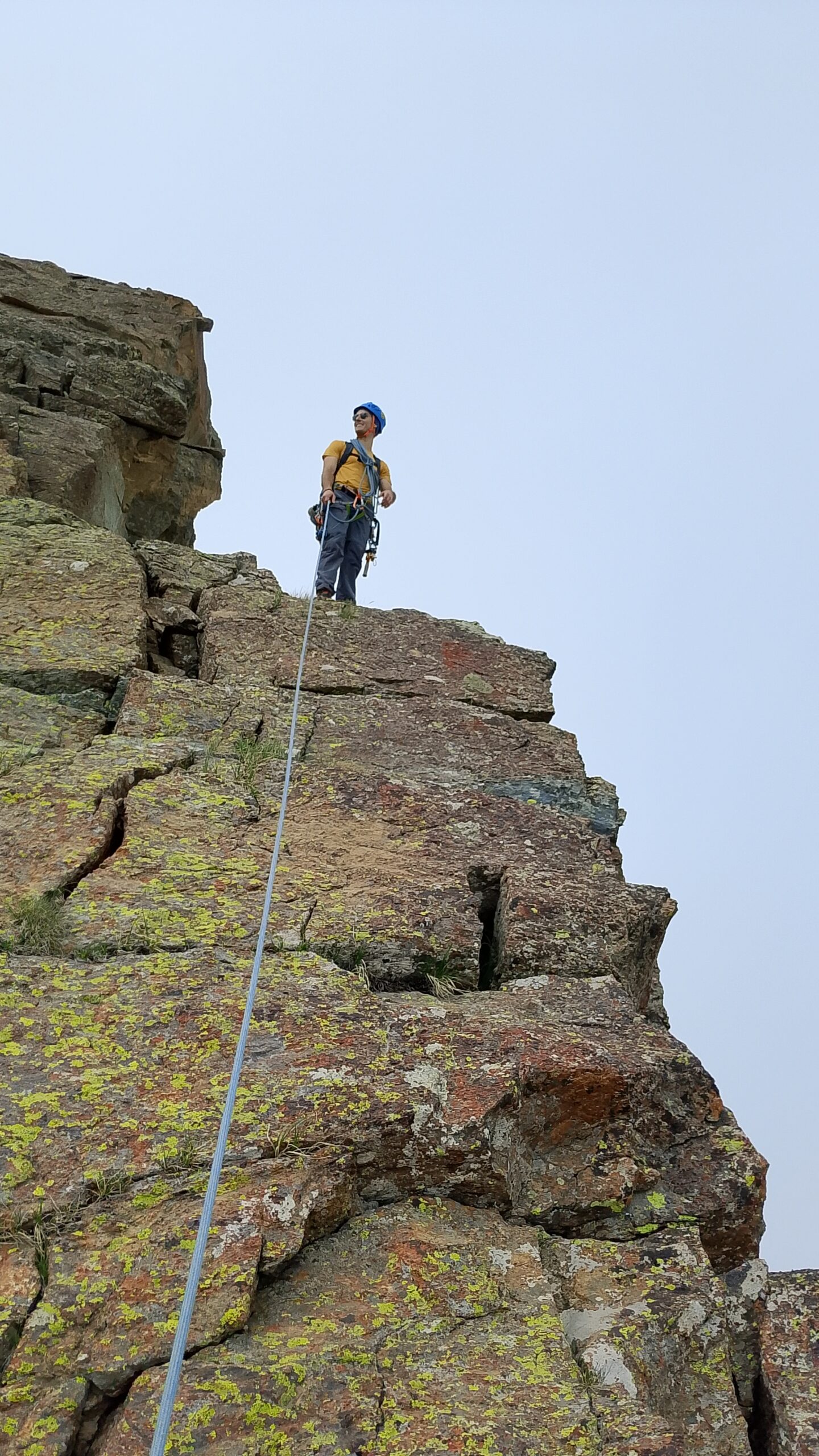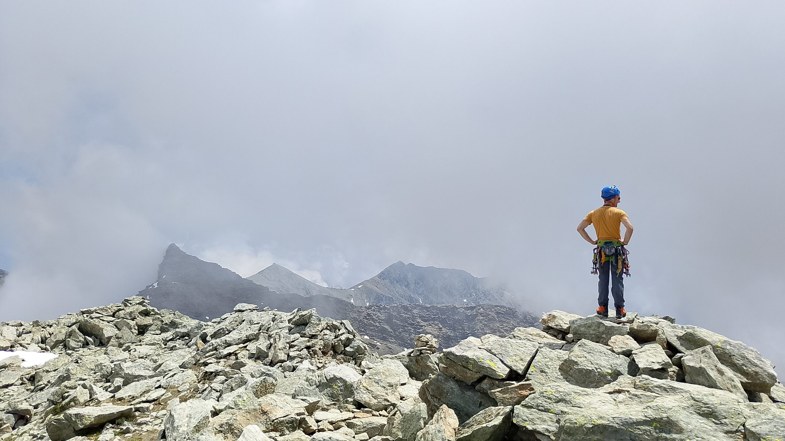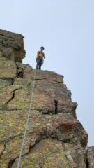 Divertente e più continuo, considerando il grado della cresta, la variante a sinistra in partenza su muretto tranquillo per arrivare al secondo tiro. Per il resto divertendosi si trovano sempre i passaggi più interessanti. Tranne 2 o 3 punti si può fare in conserva. La cima è difficile da lasciare, comoda e bel panorama.