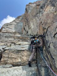 L’attacco si trova al primo diedro a destra dello spigolo Bianciotto.