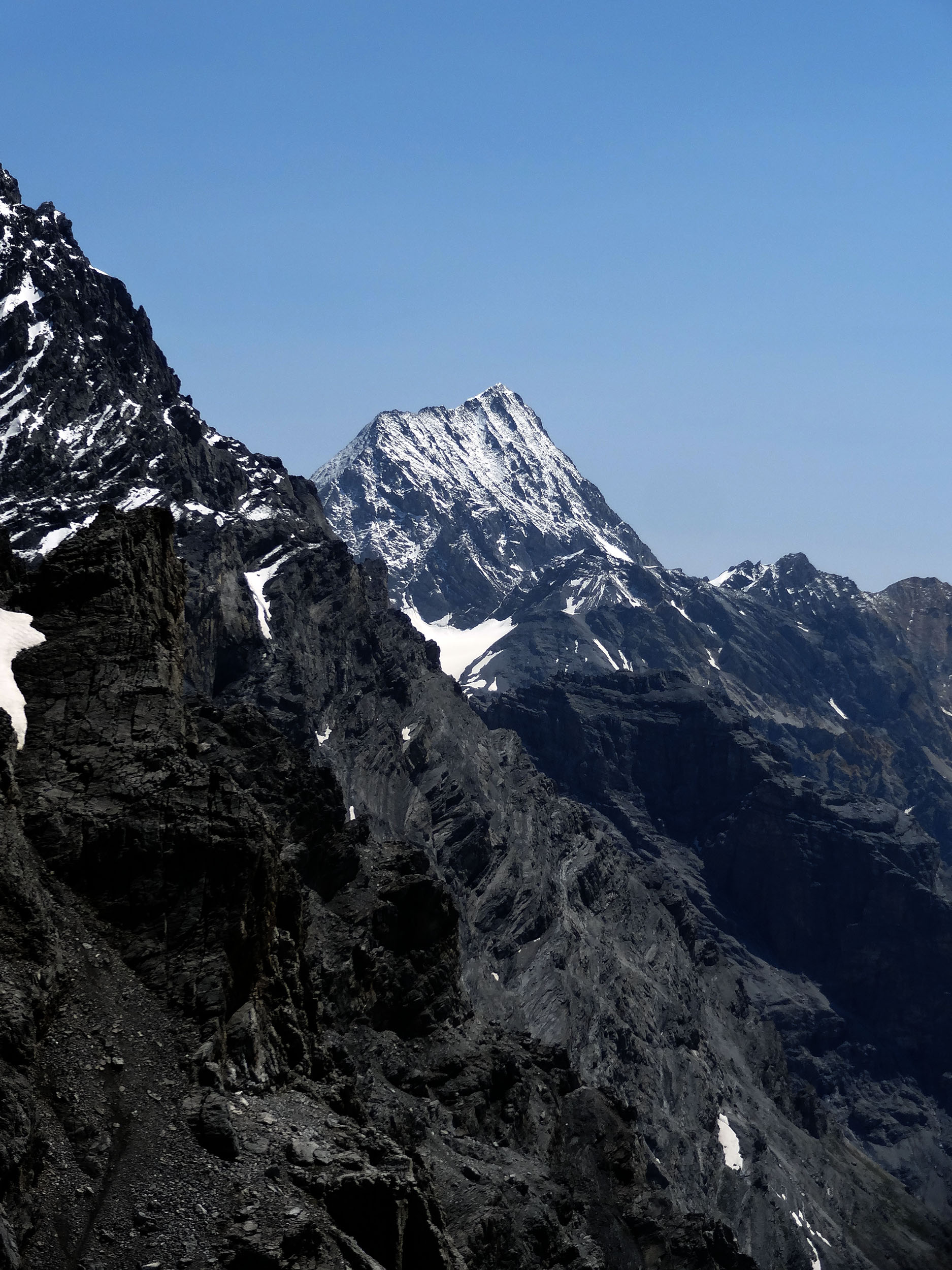 Raggiunto il passo, lungo il sentiero militare (non sempre visibile) si attraversa in salita l’anfiteatro roccioso sino a raggiungere un ampio cengione ascendente che riporta sulla cresta, a breve distanza dai primi baraccamenti militari. Successivamente il sentiero si tiene per lo più sul versante della Val Zebrù (da qui è anche possibile seguire, con qualche difficoltà, la cresta).