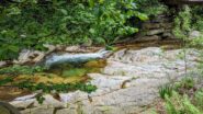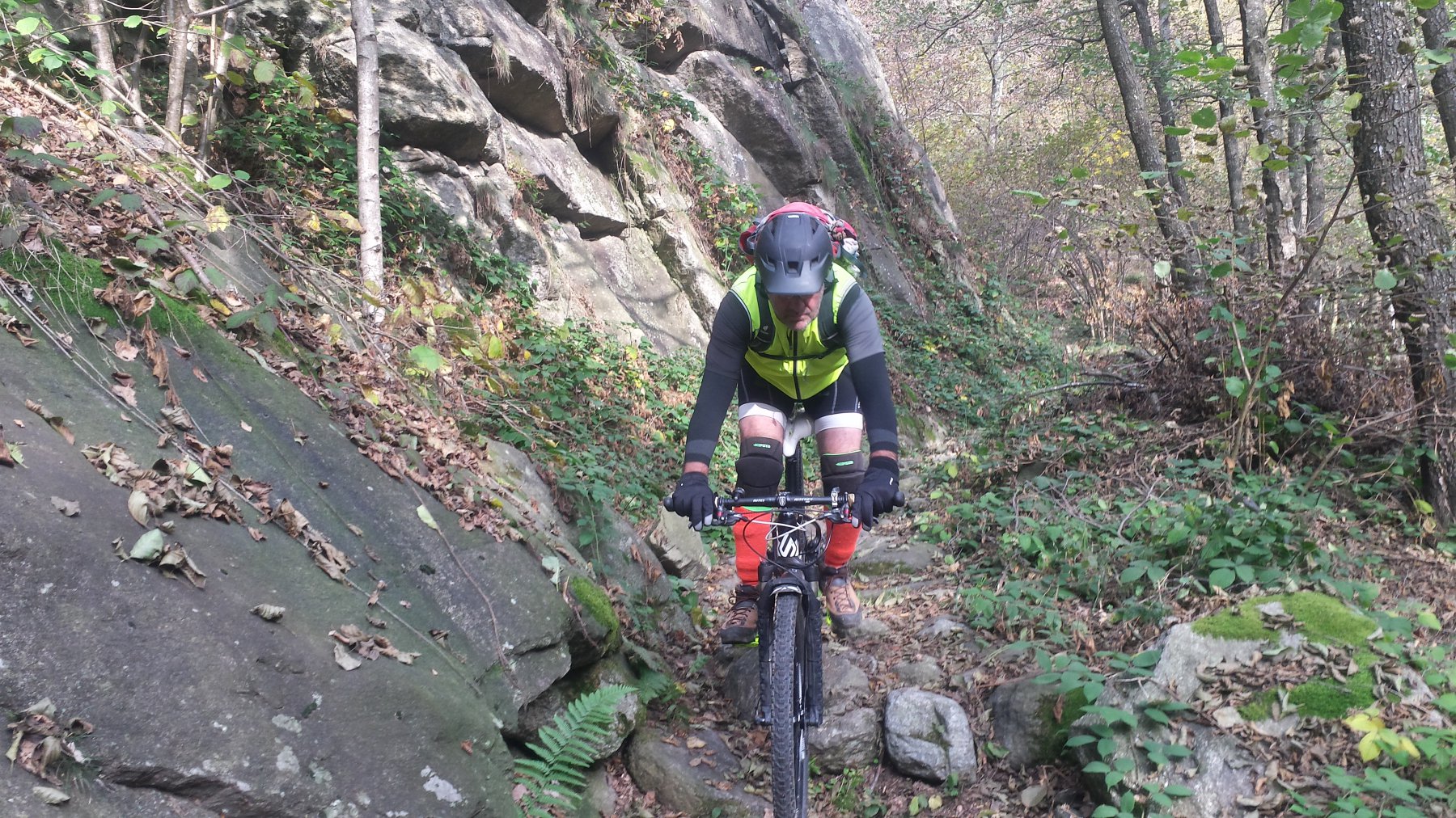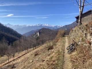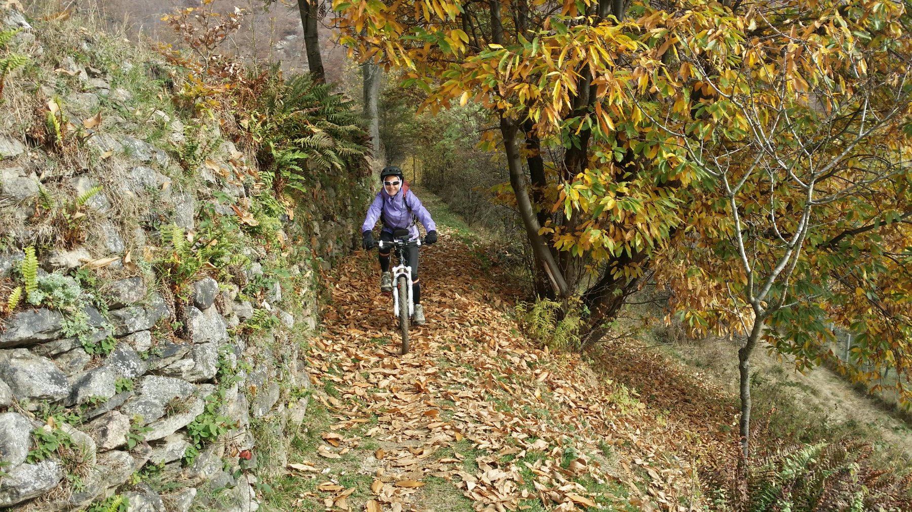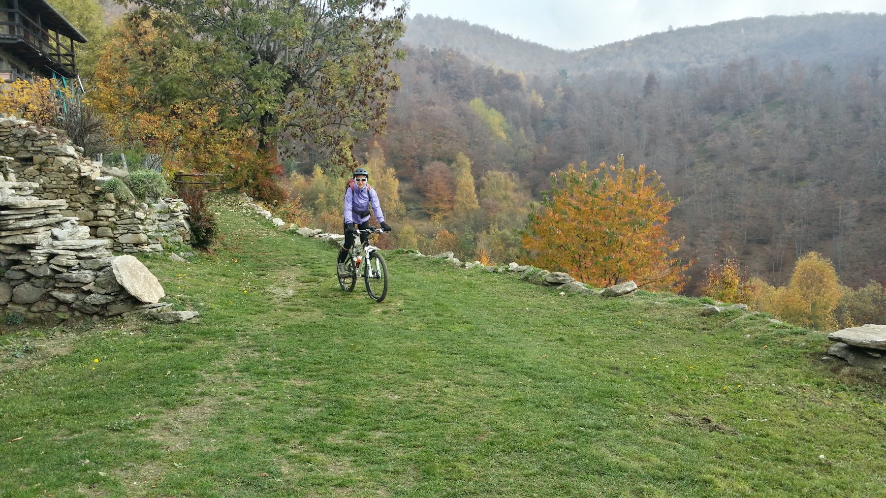 Seguendo la traccia, si svolta a sinistra rimontando una ripida rampa incisa dall’acqua, al limite della ciclabilità, che permette di riguadagnare un colletto (16 km).