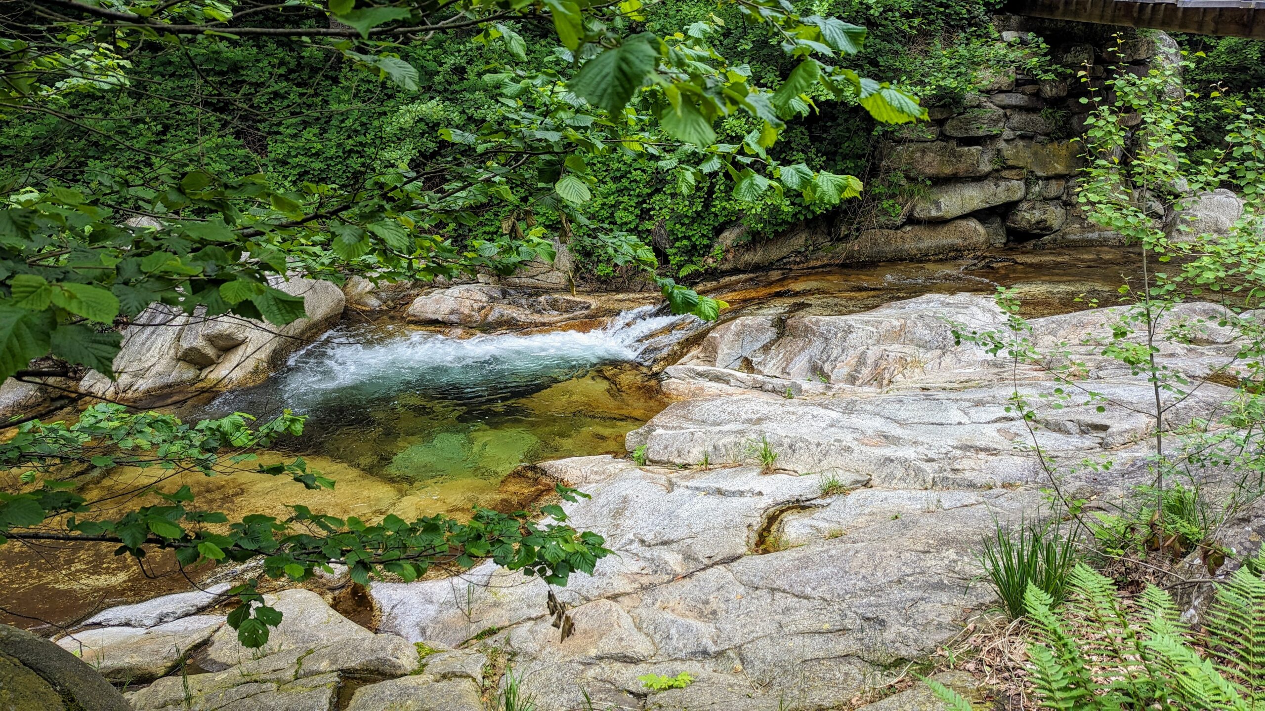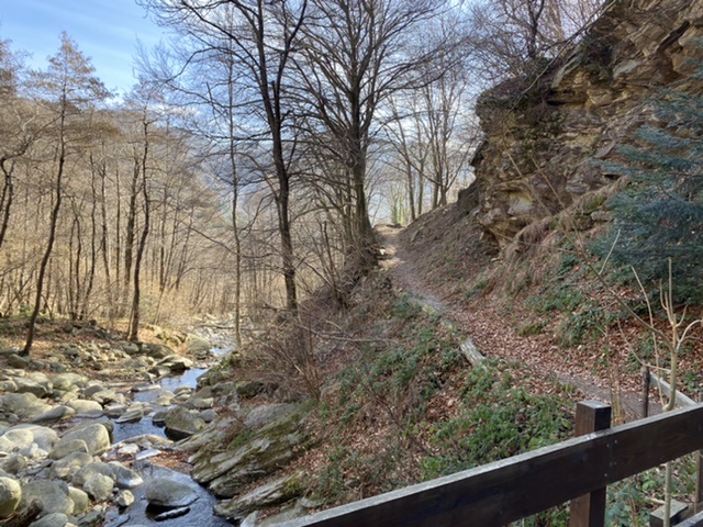 Sguardo alla cappella si segue sulla destra un bel sentiero, che porta alla Borgata Tagliaretto, dove si imbocca, sempre a sinistra, un sentiero piuttosto vecloce che, superando anche un paio di brevissime rampe in salita, conduce infine tra le case di Dubbione, in prossimità del Ponte di Annibale.