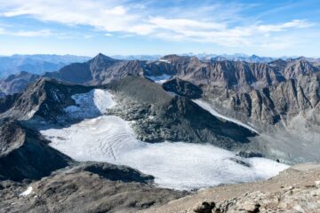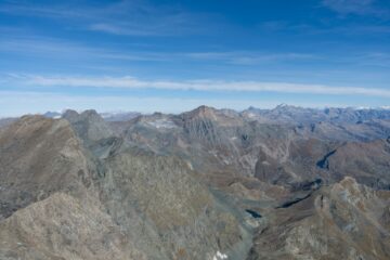 Sentiero sempre chiaro fino a quota 3300. Bolli bianco rossi fino al colle della Valletta, oltre resistono alcuni sbiaditi bolli rossi e vari ometti, la traccia in pietraia è comunque ben visibile.