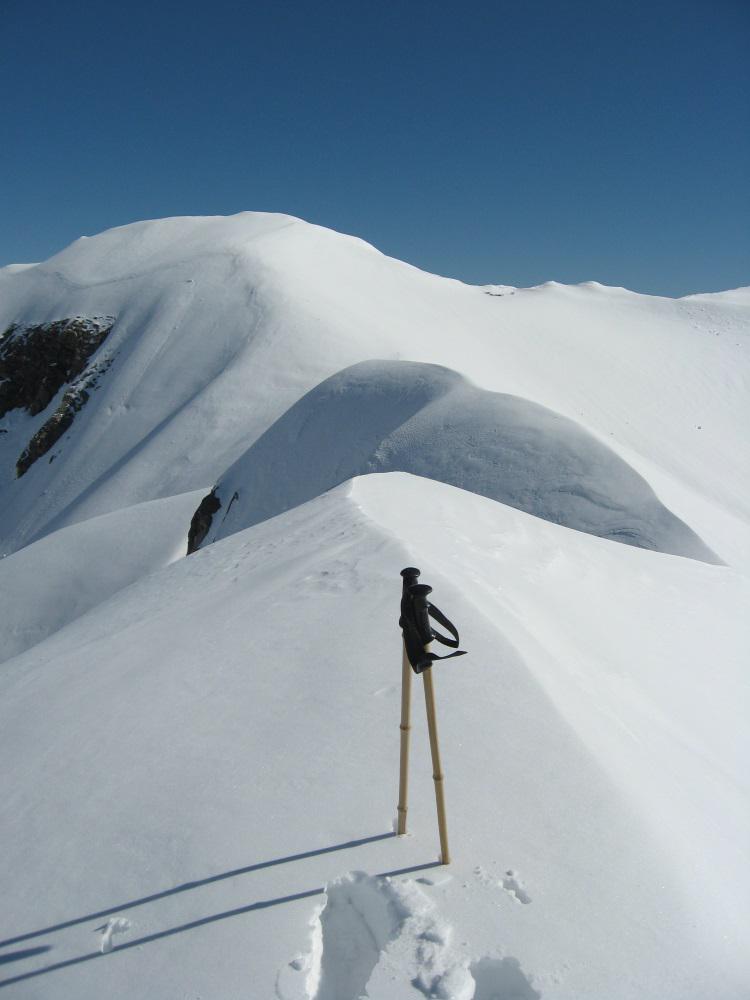 Da qui, arrivati con uno dei tre possibili percorsi, si continua lungo la strada superando la chiesetta Madonna della Neve, quindi si arriva a Pian Pie. Dalla croce in legno si prosegue per 400 m sulla sterrata per poi abbandonarla e risalire la lunga costa fino sulla cima.