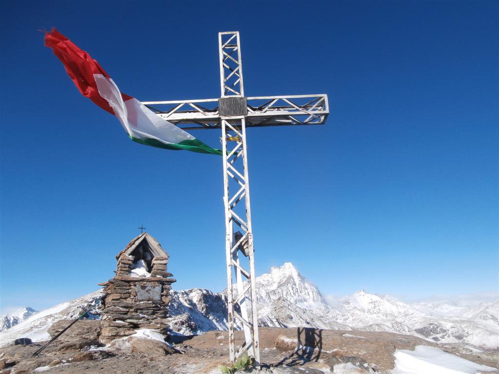 Oggi gran giornata, senza una nuvola e bel sole, ma…che vento! soprattutto di prima mattina, poi è andato a calare, per fortuna. Partenza per gli ormai abituali prati, un po di neve nei pressi della Cappella Alpina, dorsale quasi pulita, come anche il pendio che porta al colle del Cervetto. Da qui continuo sulla dorsale prima sulla Riba del Gias e poi sulla Garitta Nuova, discesa al colle del Prete e poi ritorno sulla sterrata fino a chiudere l’anello a Ruà. Al momento non servono neanche i ramponi, nessuno sull’itinerario, qualcuno in giro solo intorno alla Garitta.