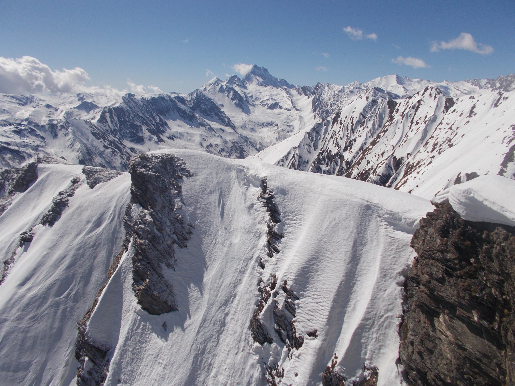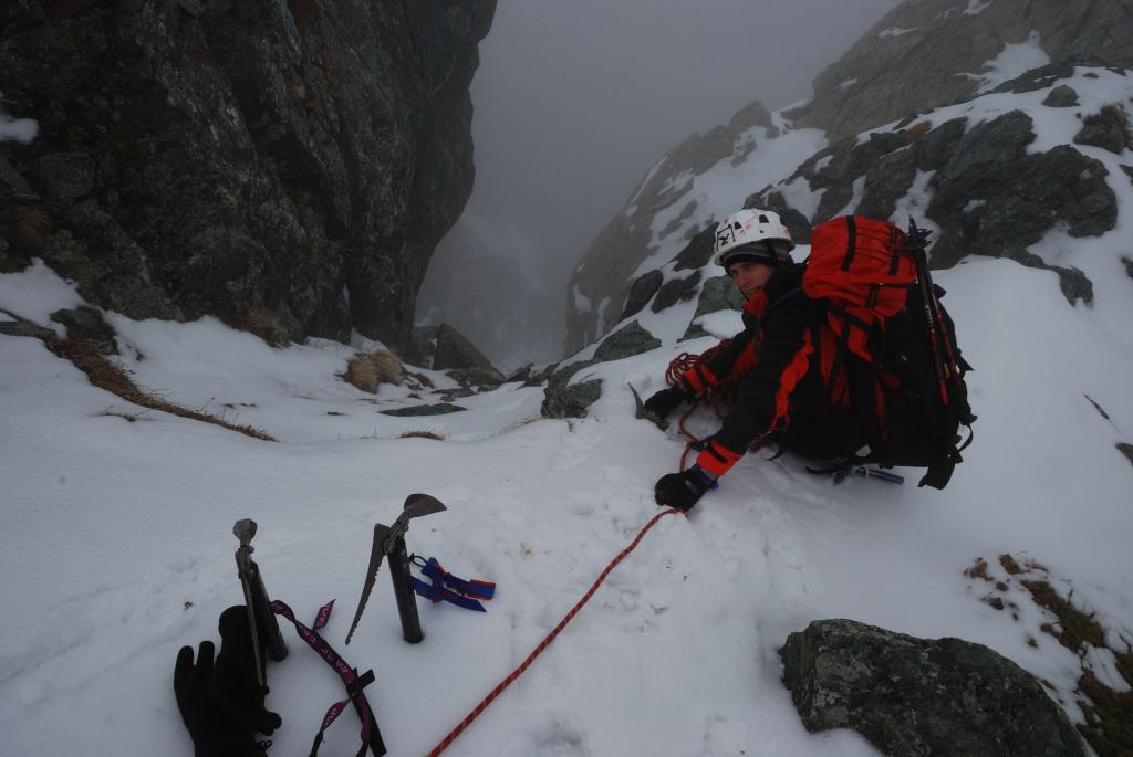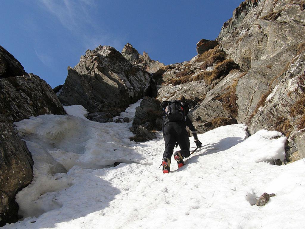 Materiale: piccozza/e, ramponi, corda consigliata, eventualmente chiodi da ghiaccio e/o da roccia