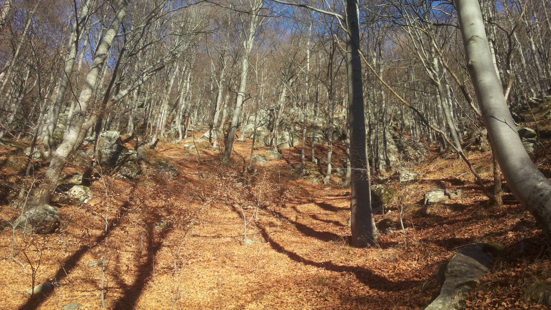 Seguire fedelmente il sentiero 236 che si innalza pochi metri prima del parcheggio. Si incontra subito una meravigliosa faggeta, a mio avviso una delle più belle delle valli.
