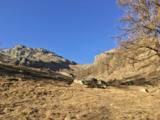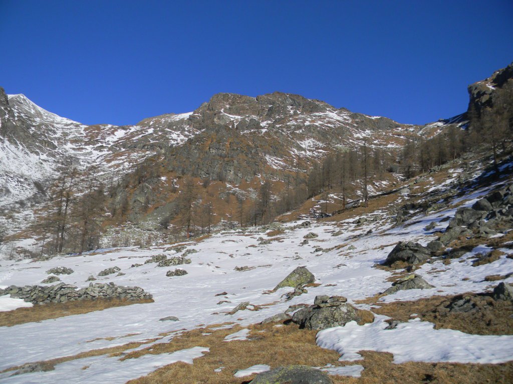 Giunti alla frazione Tea ( 1540 m.) ci si porta verso Est seguendo la massima pendenza verso Nord in mezzo ai pascoli. Senza possibilità di sbagliare si arriva all’Alpe Ciavanis (1880 m.) e sempre tenendo la sx del caseggiato ci si inerpica fino all’ Alpe Pian Comune (2110 m. ca.).