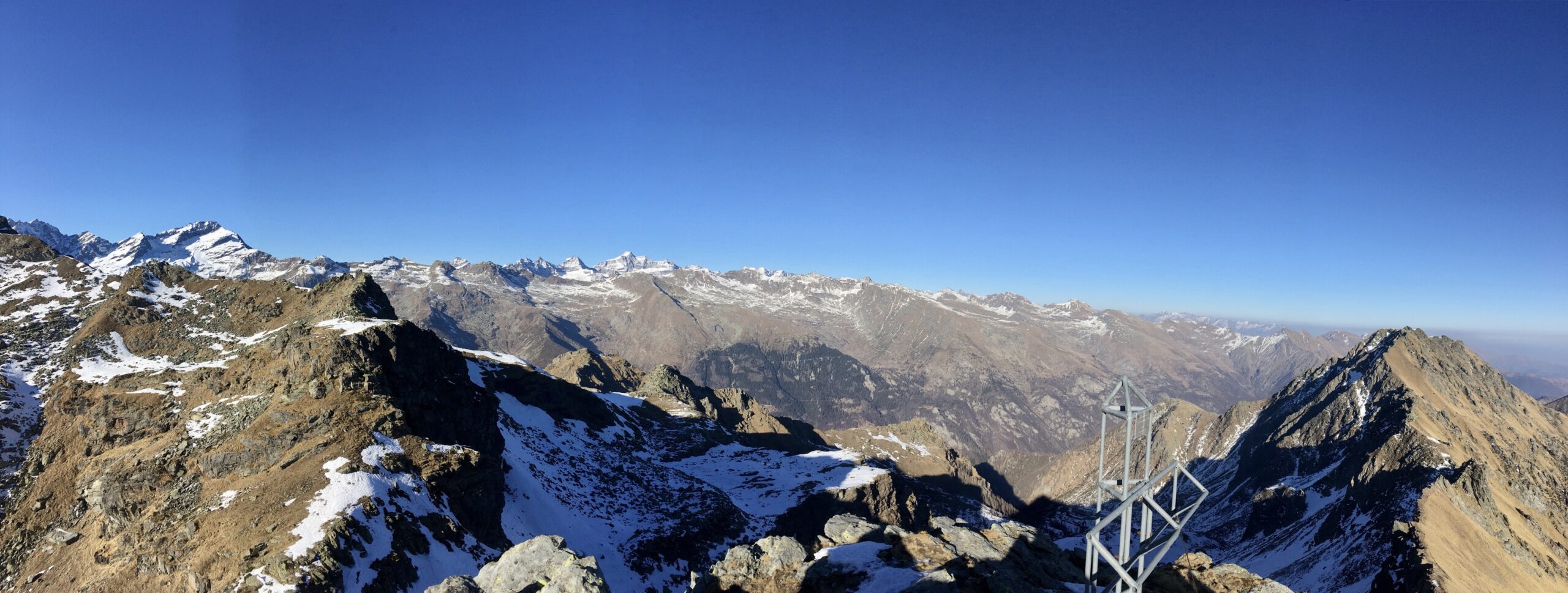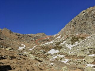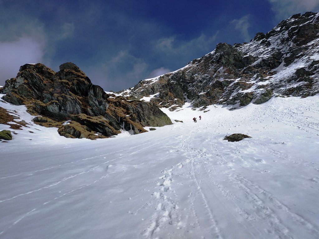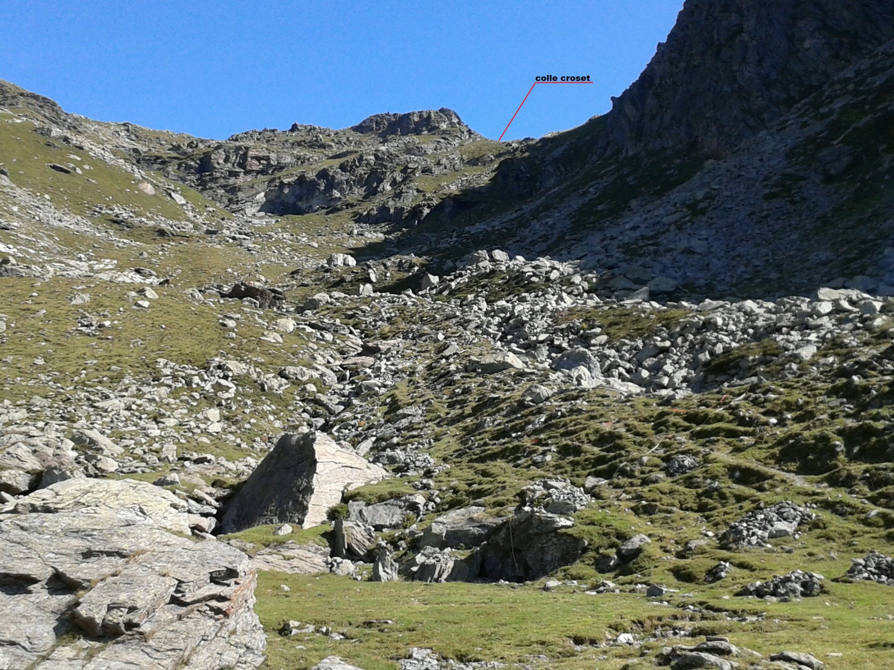La pendenza poco dopo diminuisce in una bellissima conca e poi per tracce di sentiero verso est, si svetta al Colletto (non il col Croset). Senza possibilità di sbagliare per ripidi pendii rocciosi in direzione E si tocca la croce metallica principale della Punta Croset.