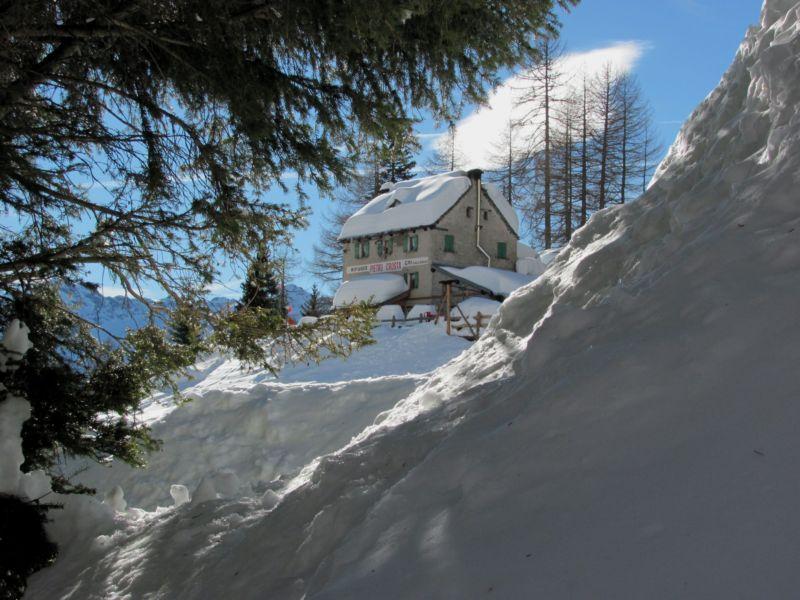Bellissima gita con giornata stupenda. Pista tutta battuta fino al rifugio. Si può salire anche senza ciaspole, ma bisogna averle per il ritorno. Diversi alberi caduti lungo il percorso (15,6 Km a/r) per le forti nevicate di Natale. Ottimo pranzo al rifugio con gestori molto cordiali. Diversi ciaspolatori lungo il percorso. Gianni durante la salita ha perso i guanti che però ha ritrovato al ritorno vicino al sentiero, evidentemente ci sono ancora persone oneste in giro … Interminabile la discesa.