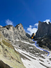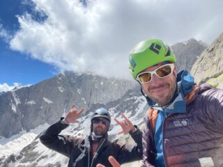 Più che per l’arrampicata, è molto bello il complessivo e ovviamente l’ambiente. Con il Monzino ancora chiuso e le previsioni scoraggianti eravamo l’unica cordata in tutto il bacino.