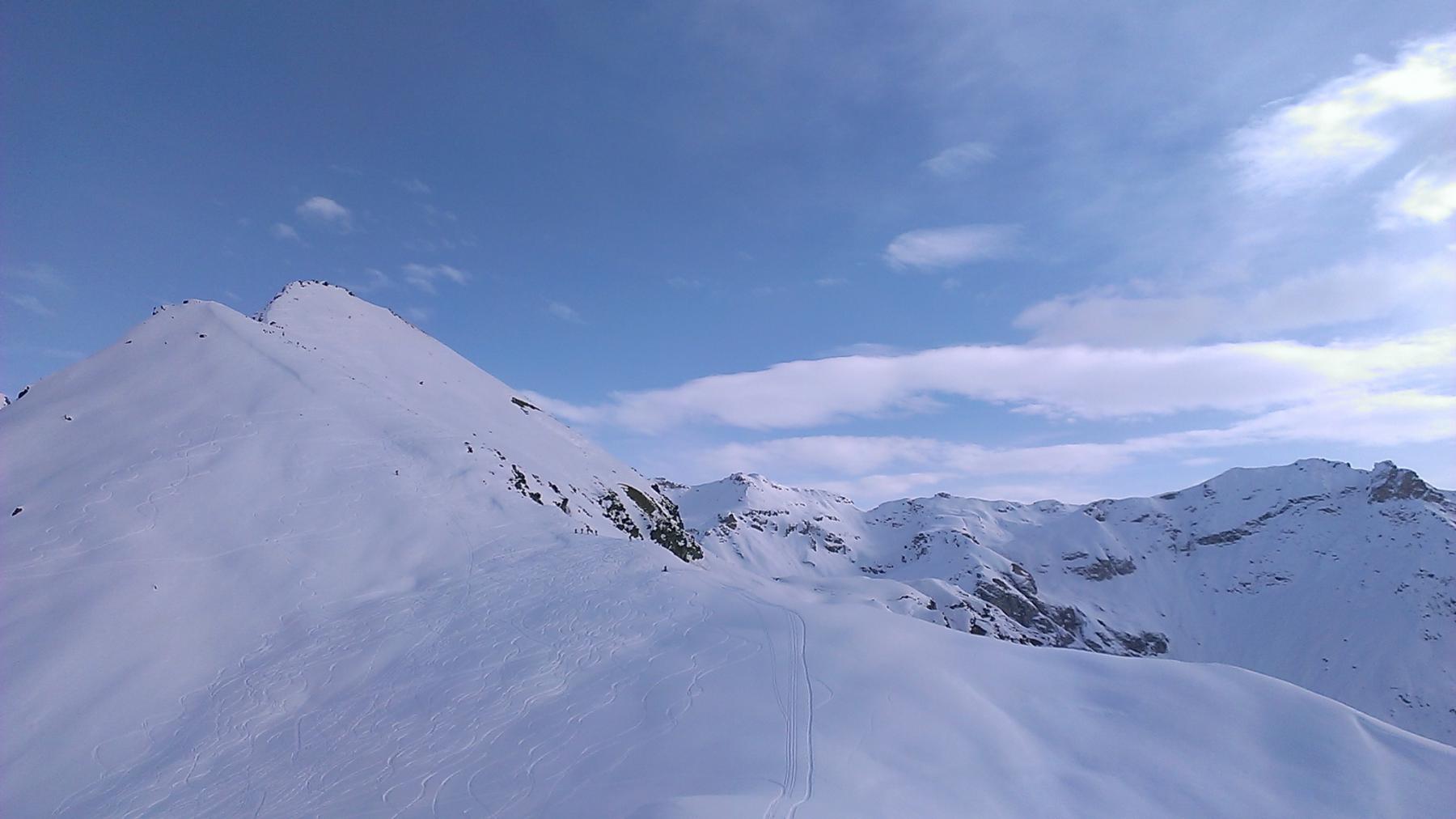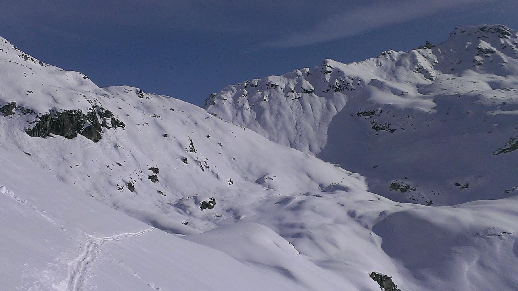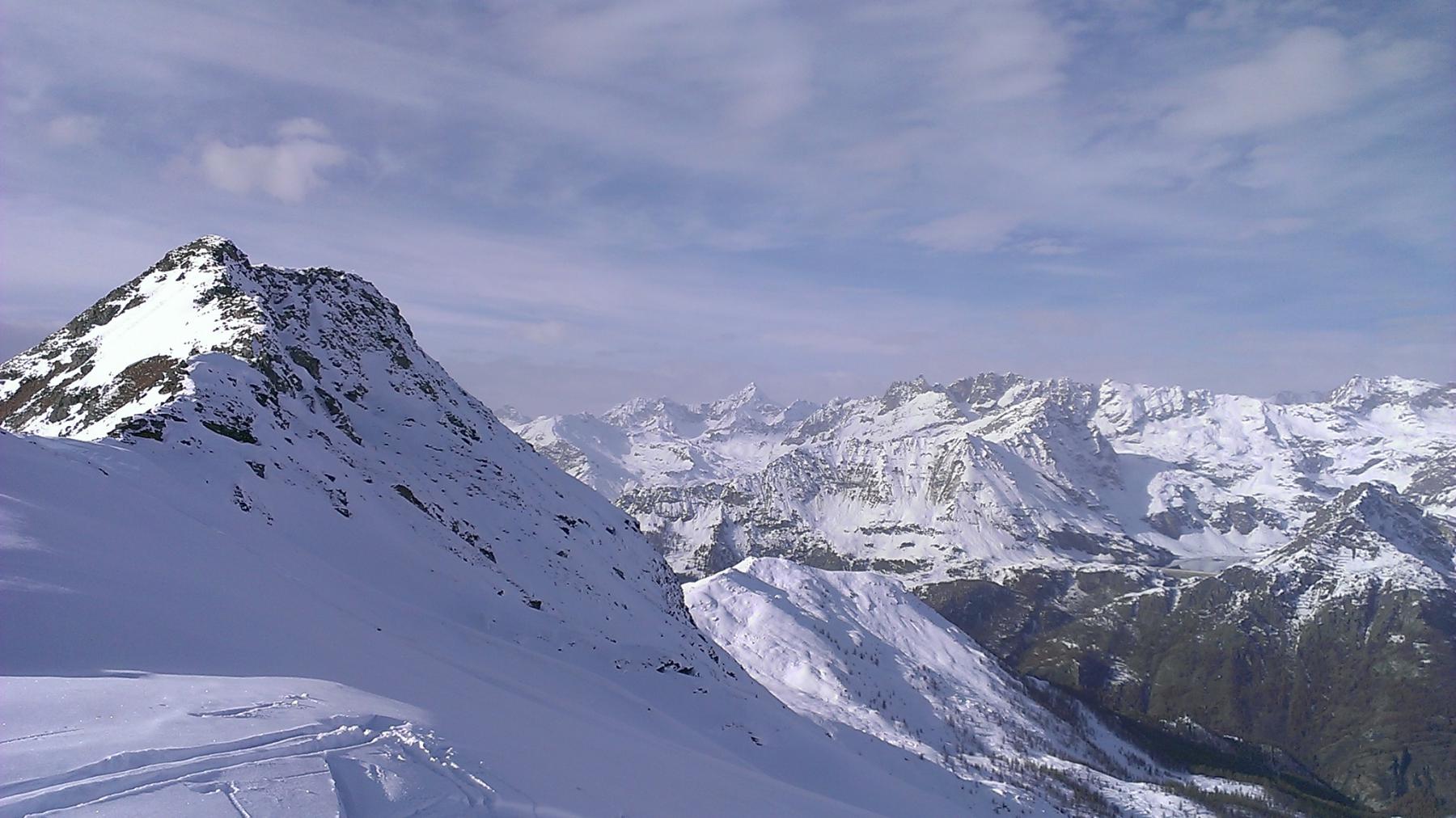 Da qui scendere per bei pendii nel vallone di Cheneil, senza percorso obbligato. Fermarsi poco prima del tratto in piano che caratterizza la frazione,metri 2105, ripellare e, di nuovo senza percorso obbligato, raggiungere la punta di Fontana Fredda metri 2513.
