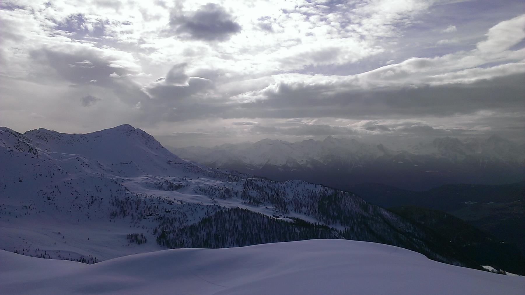 Da qui discesa verso Chamois, metri 1810, su pendii aperti eo piste battute, completando così l’anello intorno alla Punta Falinere.