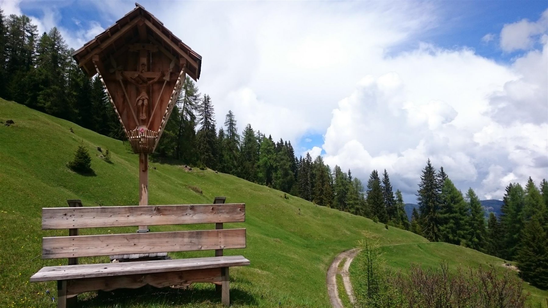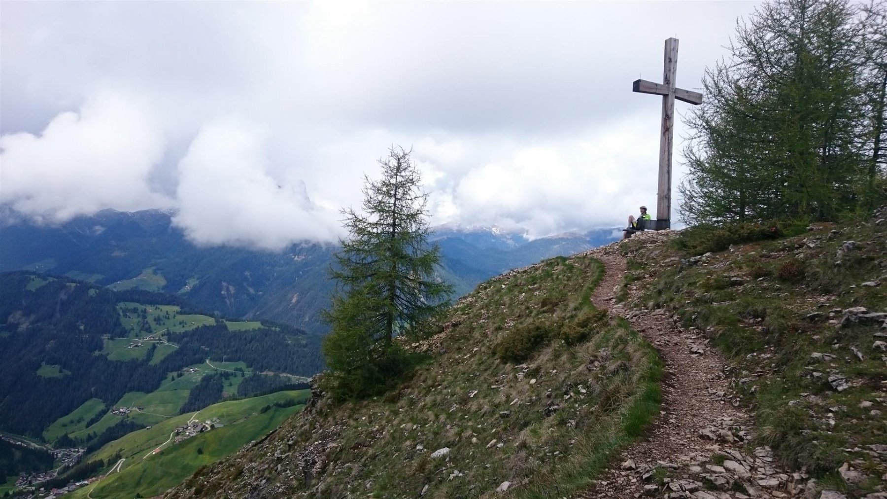 Si prosegue fino alla croce da cui si gode di un bellissimo panorama: Pares, Sasso Croce, Marmolada, Sella, Putia.